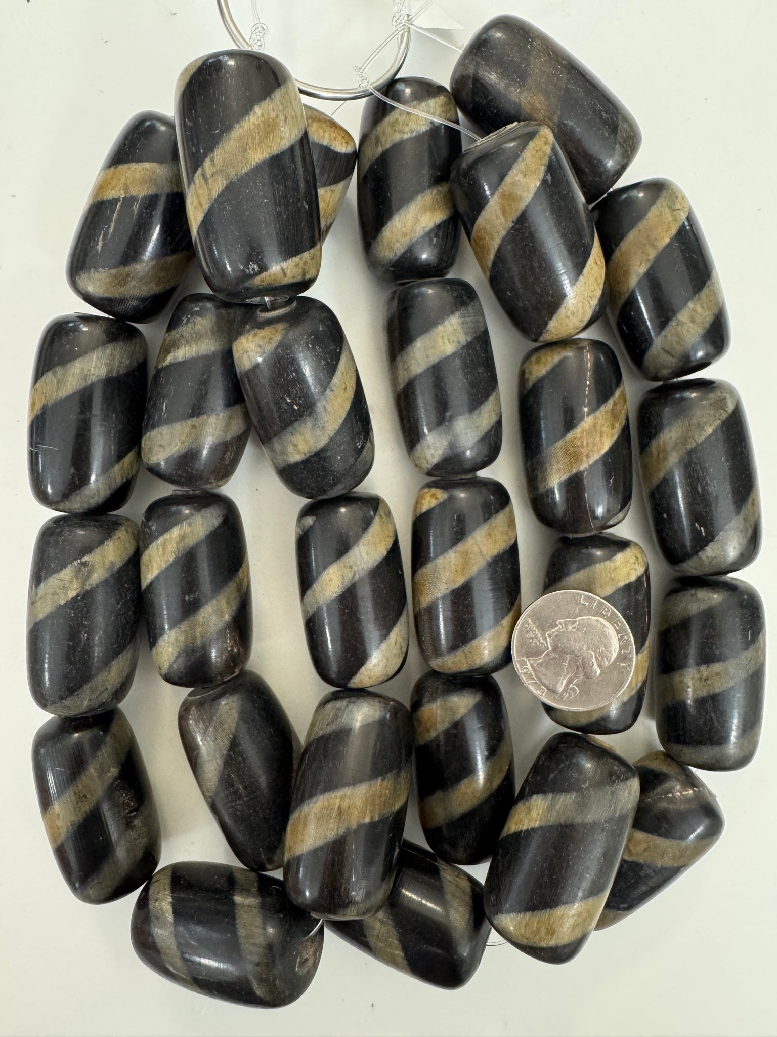 black off white golden horn, spiral  motif, 42x23mm tube, 15" strand, sold per strand