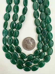 indian green aventurine, 15x10x5mm oval, 15" strand, sold per strand