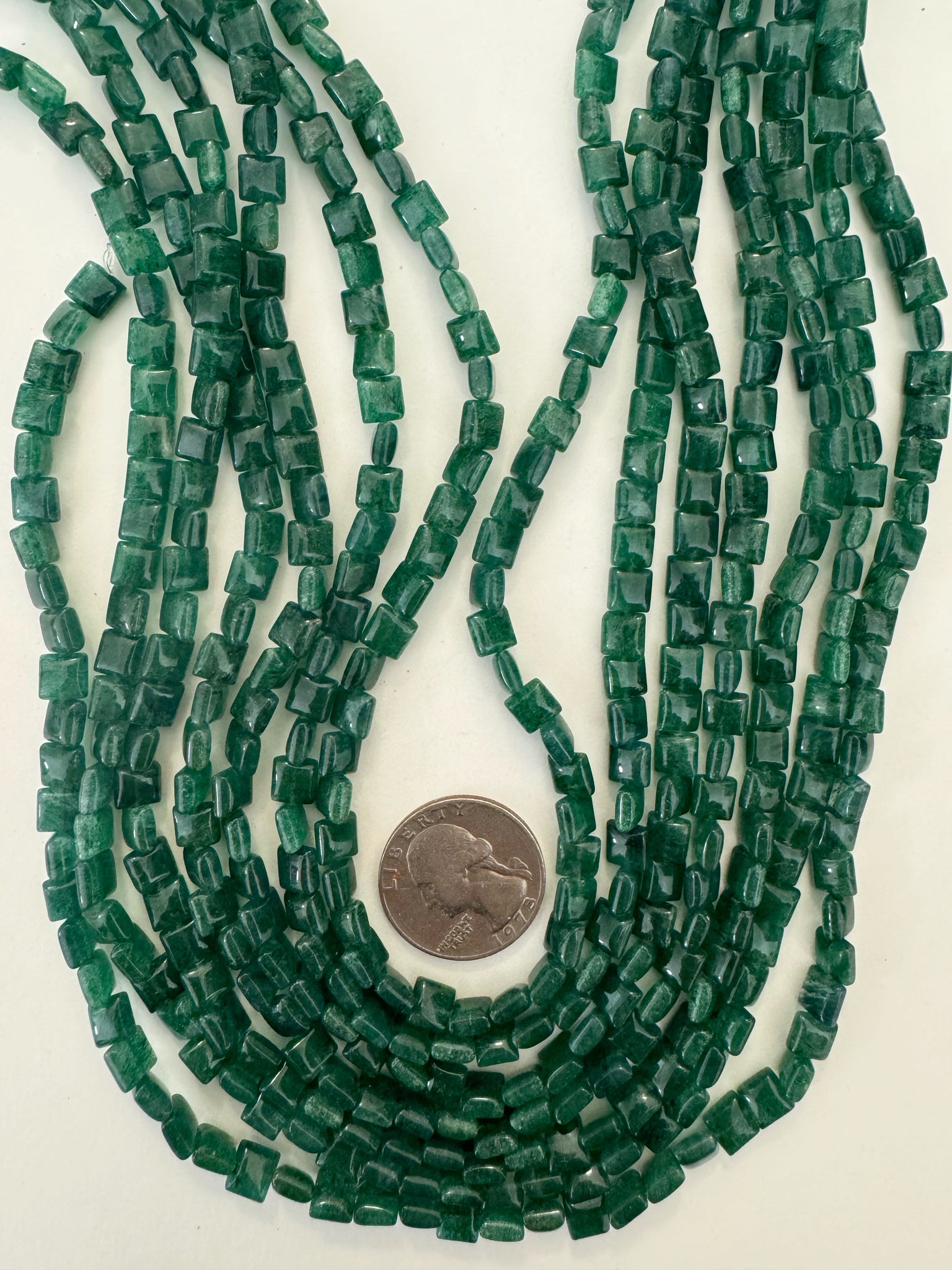 indian green aventurine, 6x6x3mm square, 15" strand, sold per strand