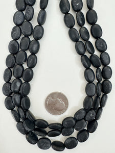 matte black stone, 13x10x5mm oval, 15" strand, sold per strand, surface wear