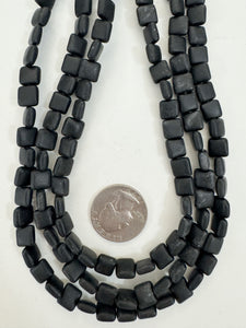 matte black stone, 8x8x4mm square, 15" strand, sold per strand, surface wear