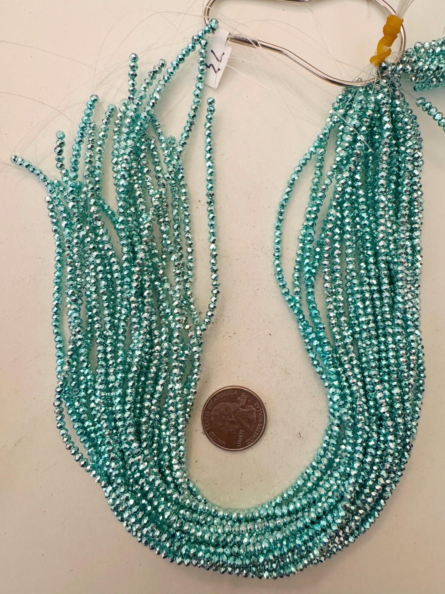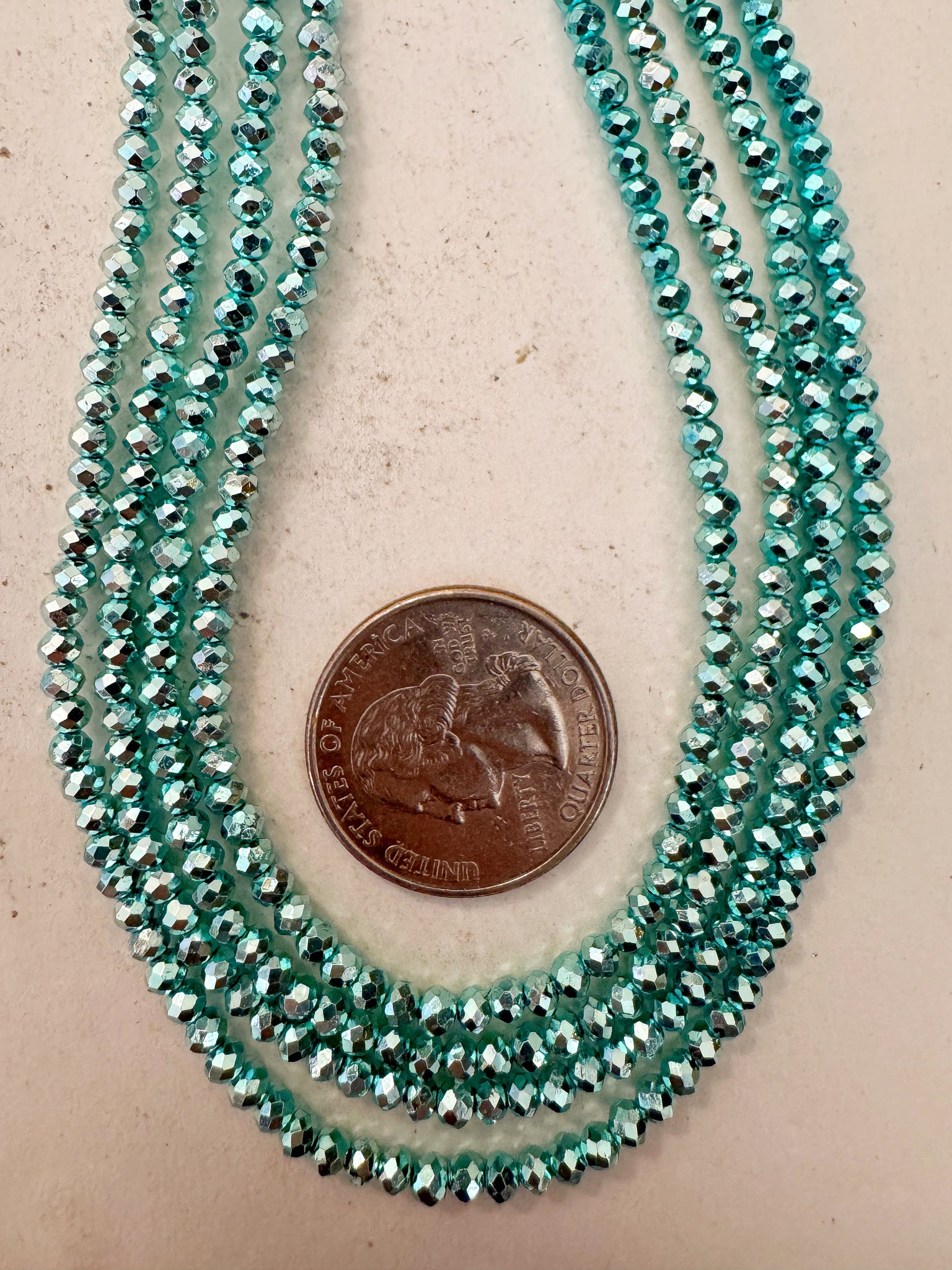 metallic light electric blue plated glass, 3x2.5mm faceted rondelle, 15" strand, sold per strand