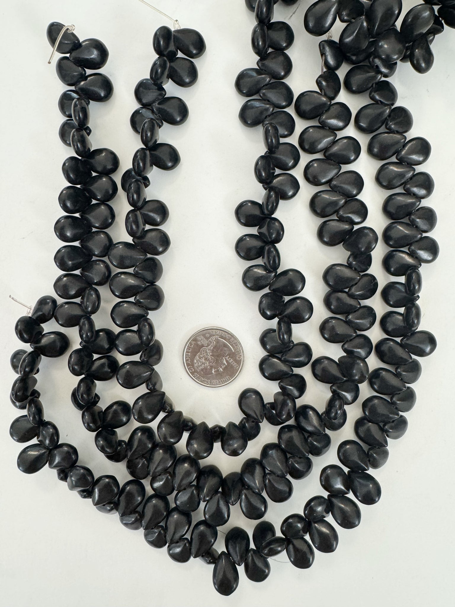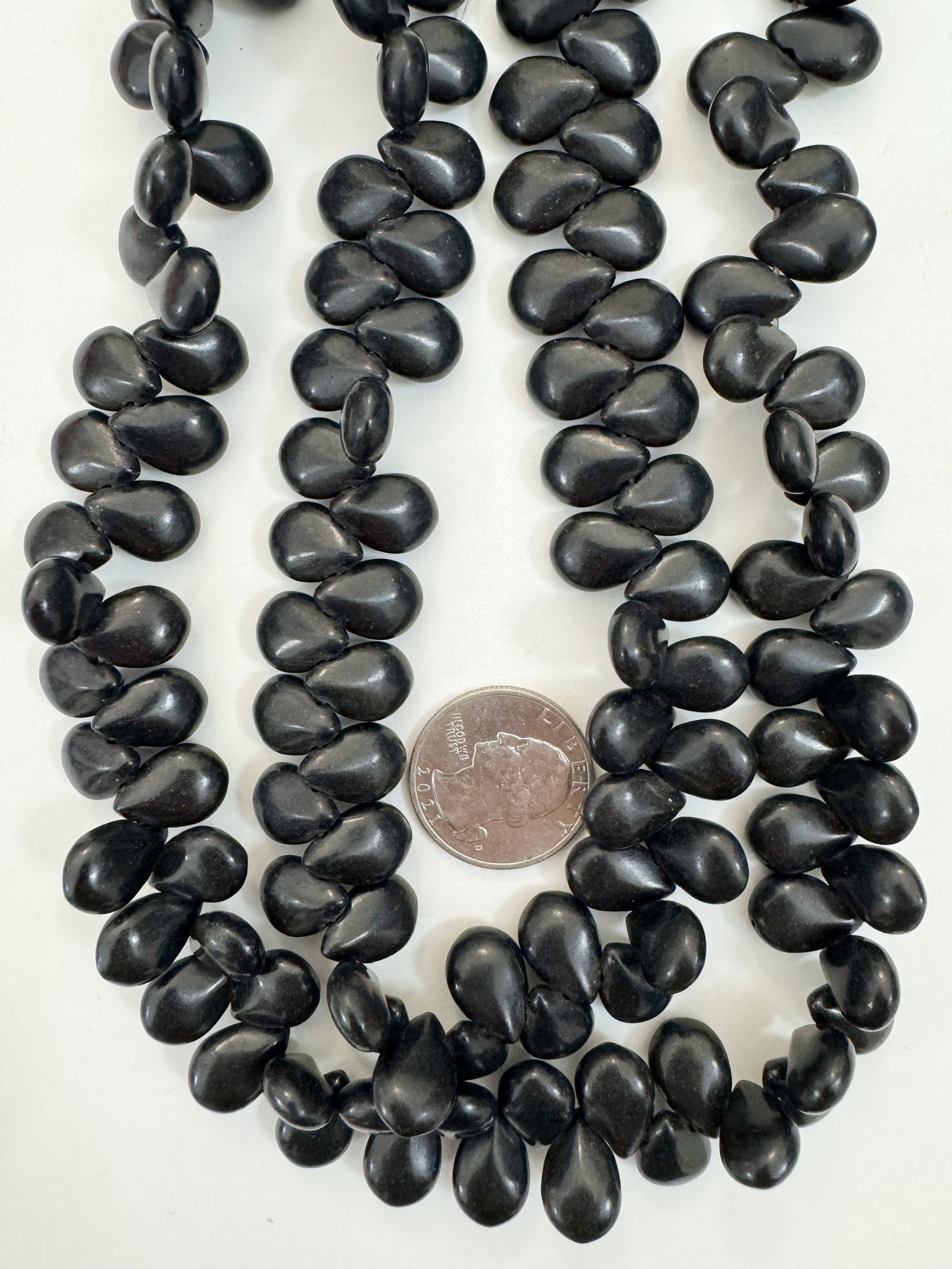 black stone, 17x13x7mm faceted flat oval, 15" strand, sold per strand