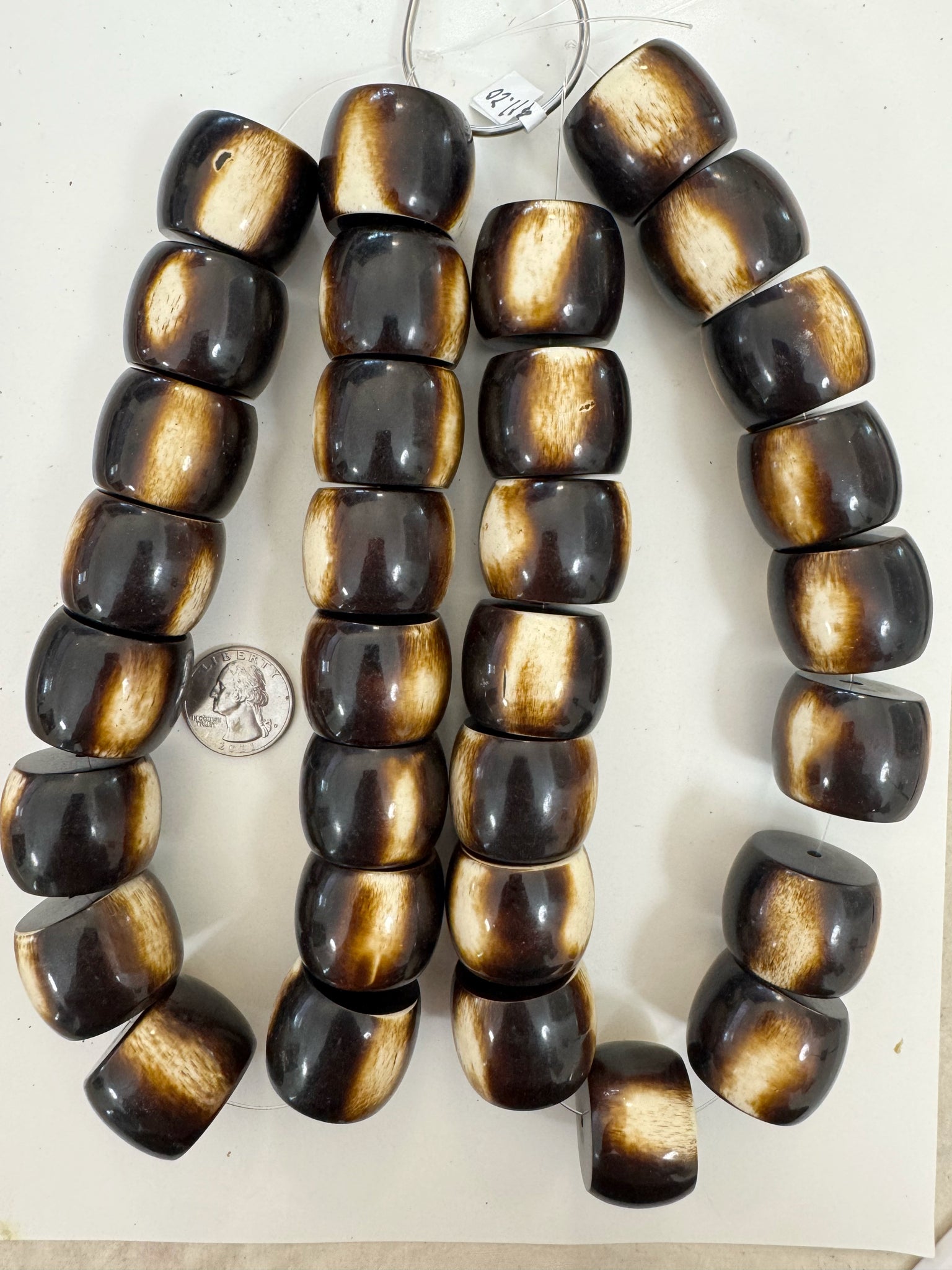 chocolate brown off white, faux bone motif, vintage look resin, 30x24mm slice rondelle, 15" strand, sold per strand