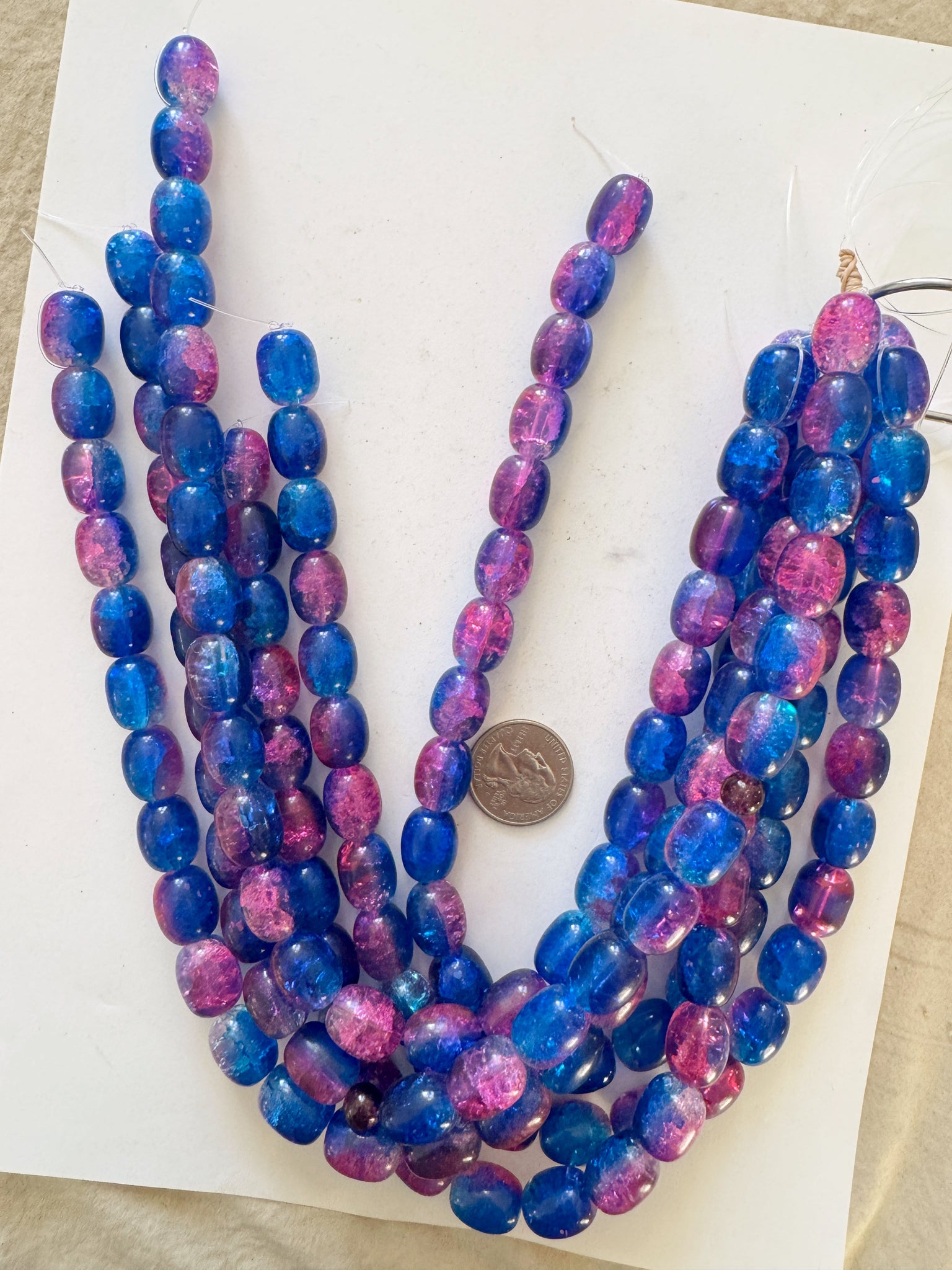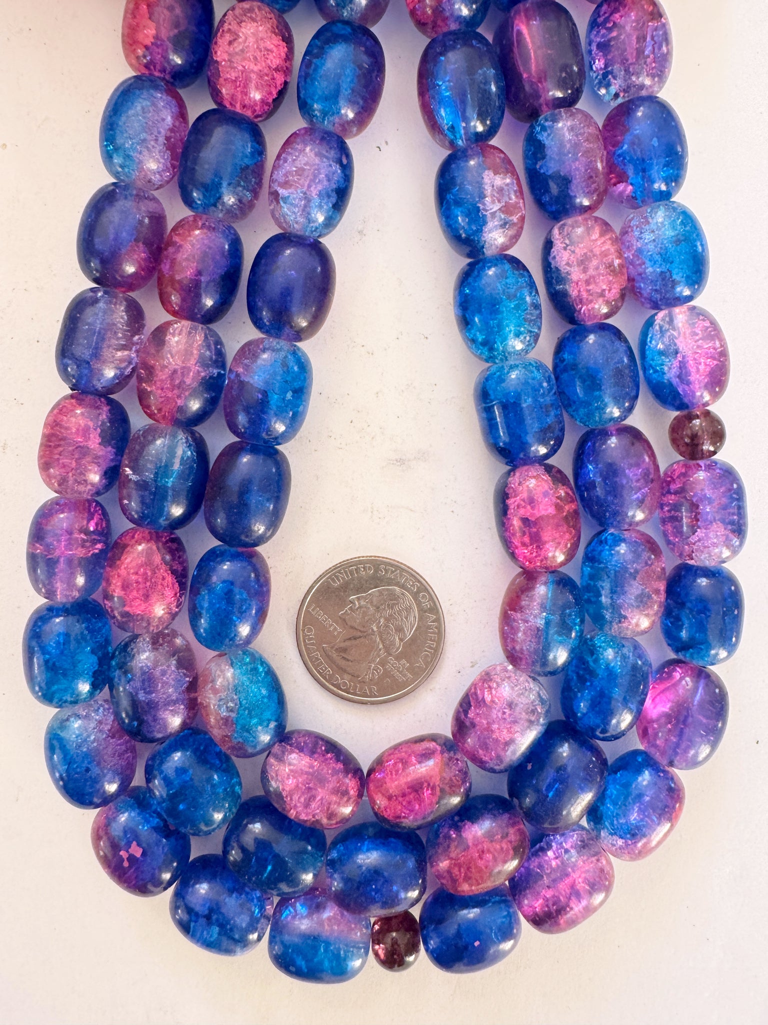 dark electric blue hot pink, crackle motif, vintage look glass, 16x13mm barrel, 15" strand, sold per strand