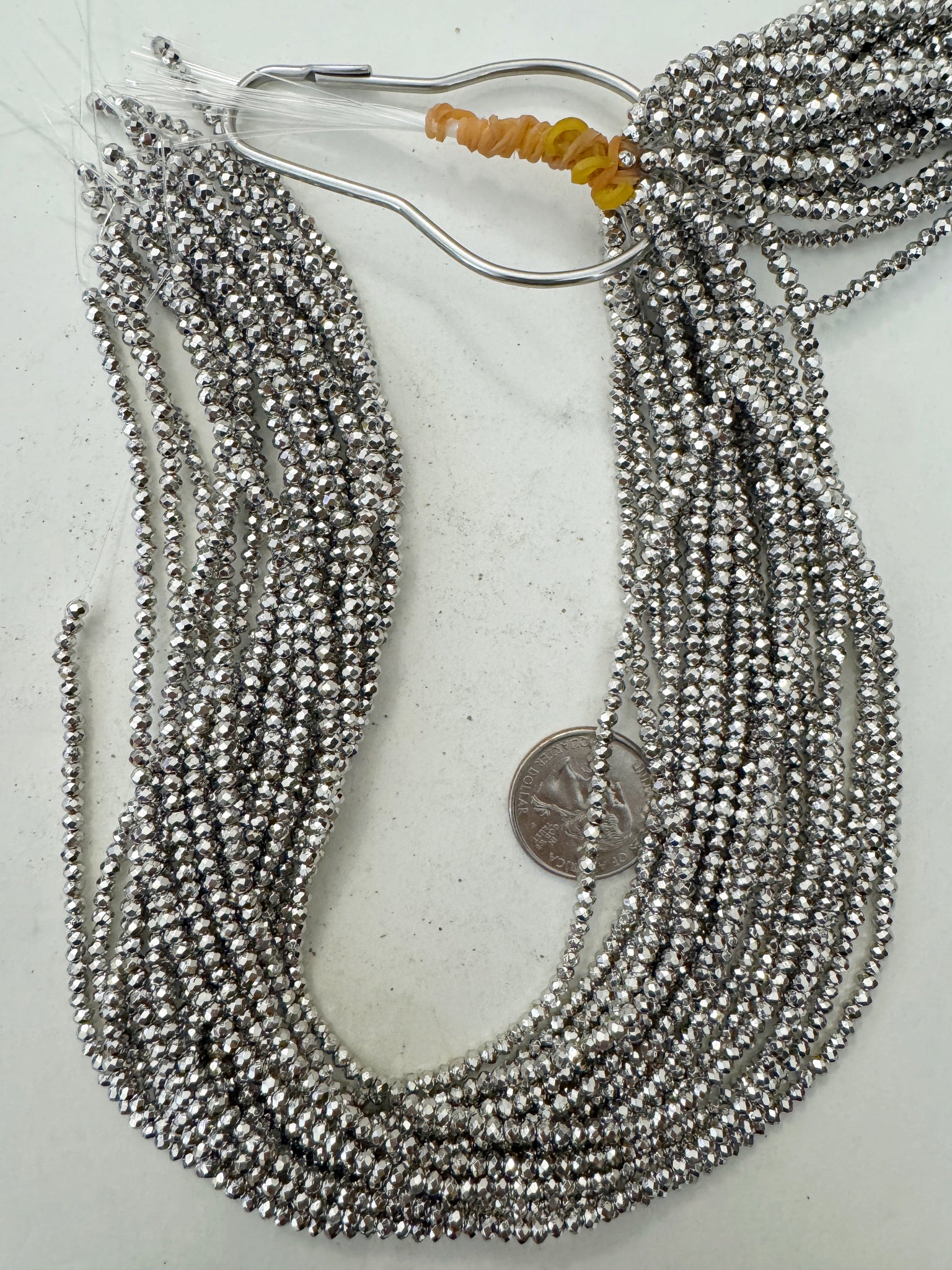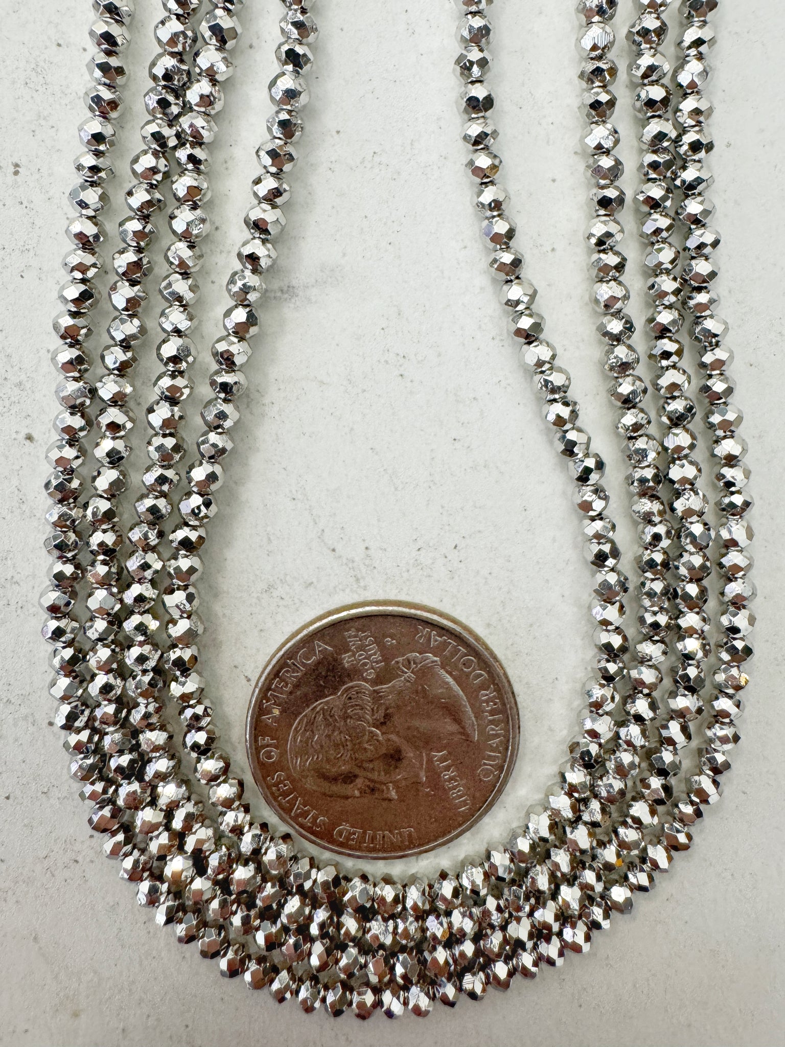metallic antique silver plated glass, 3x2.5mm faceted rondelle, 14" strand, sold per strand