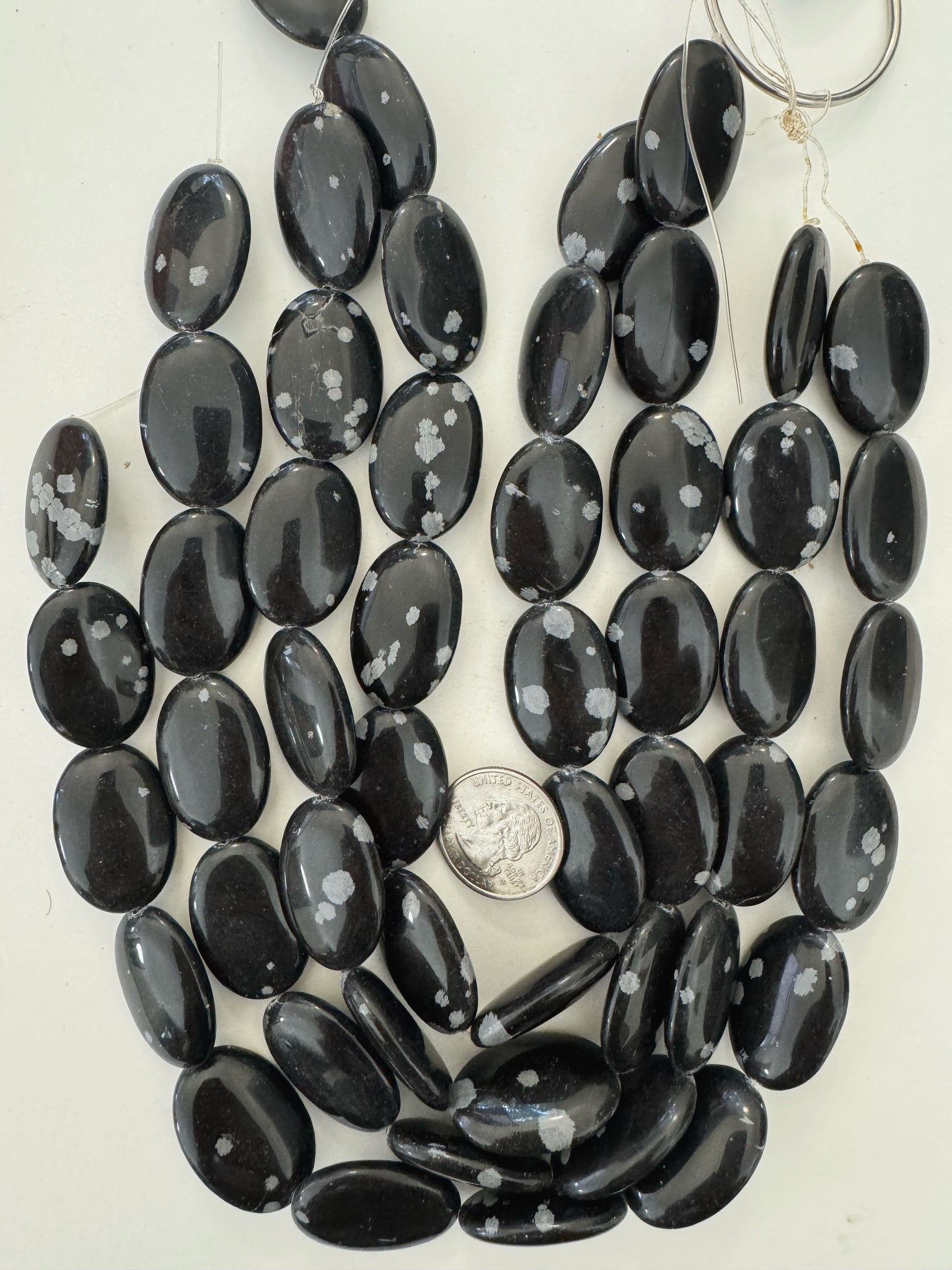 snowflake obsidian, 30x20x8mm oval 15" strand, sold per strand