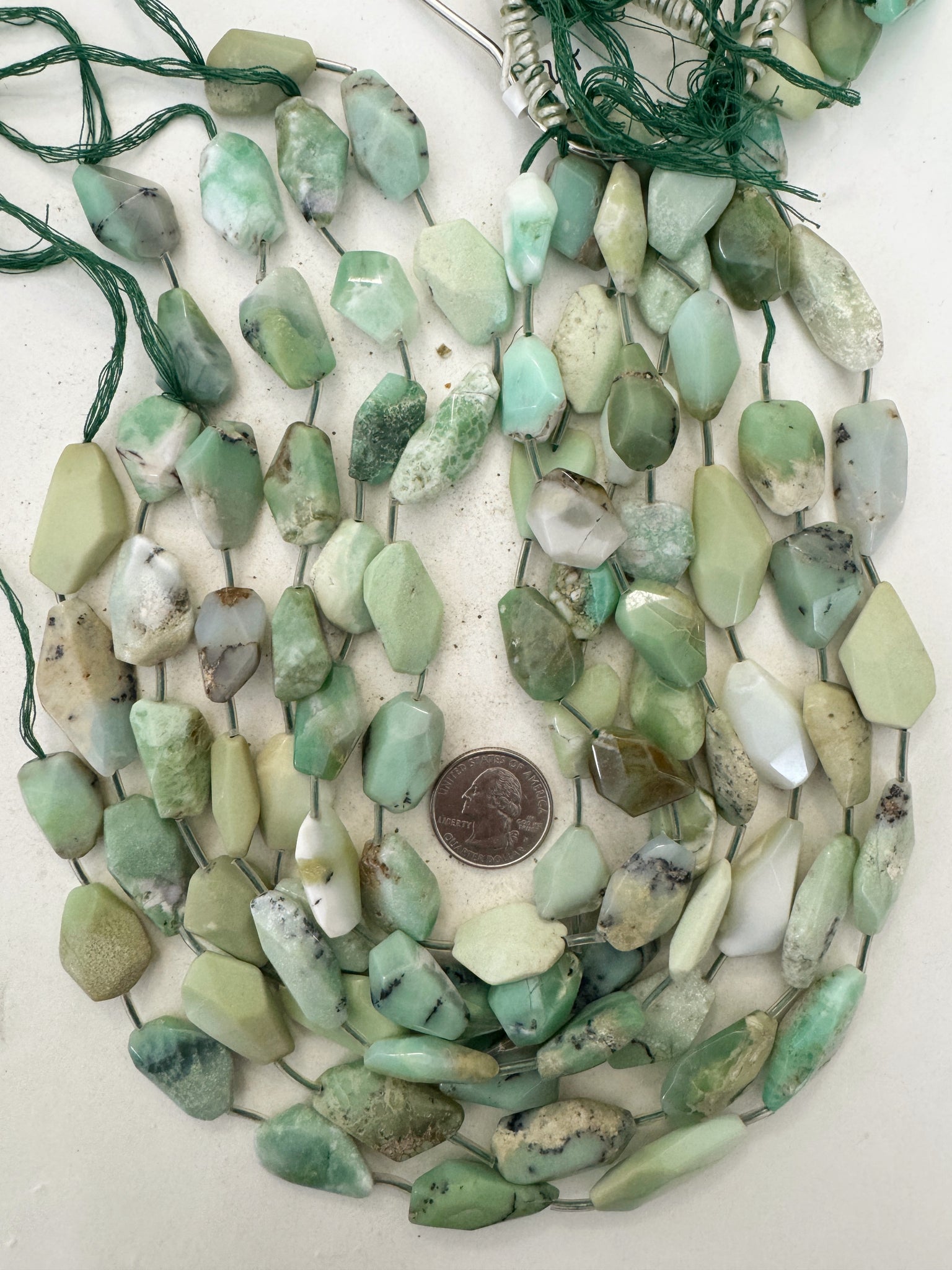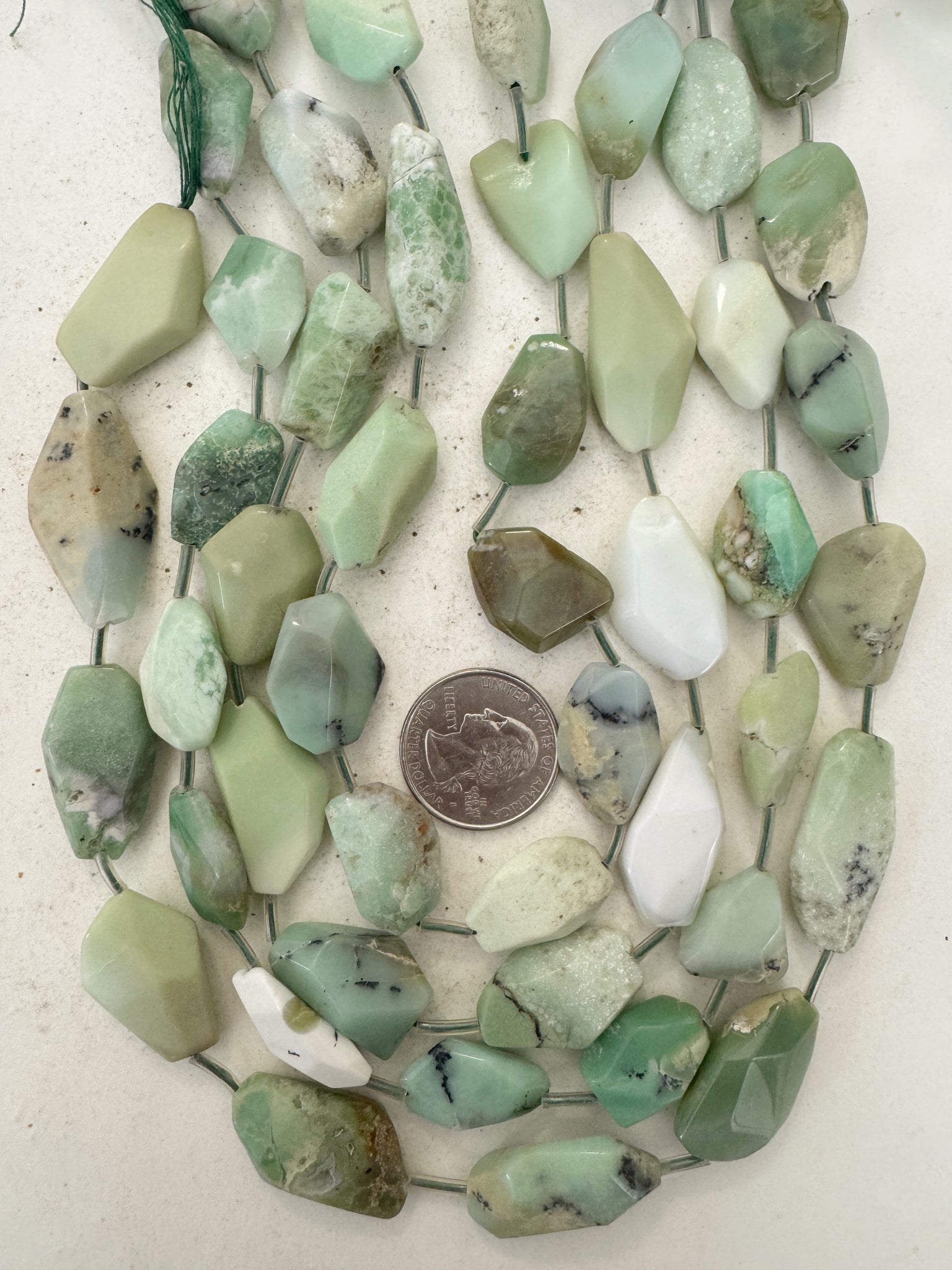 chrysoprase, 20x16mm - 31x16mm mixed size tumbled large facet flat nuggets, 15" strand, sold per strand