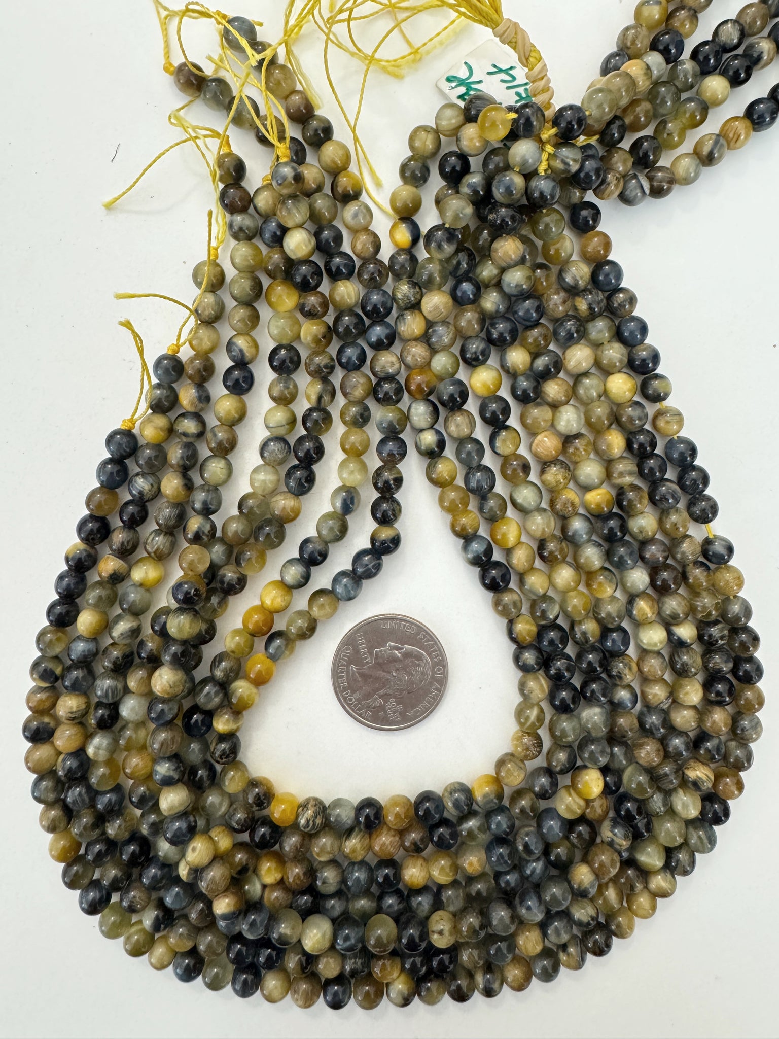 blue yellow tiger eye, 6mm round, 15" strand, sold per strand