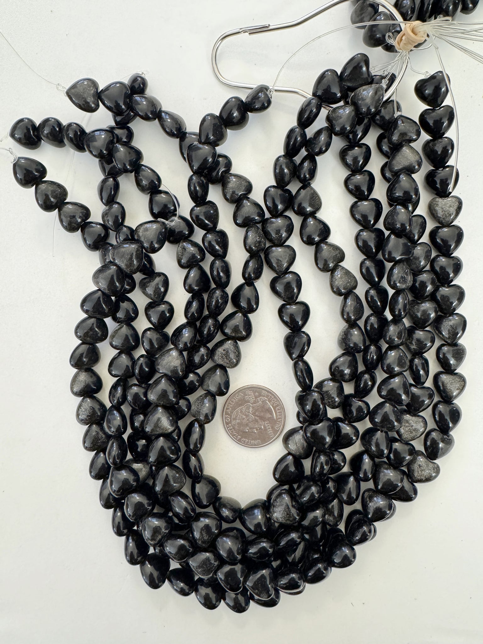 sheen obsidian, 11x11x7mm heart, 15" strand, sold per strand