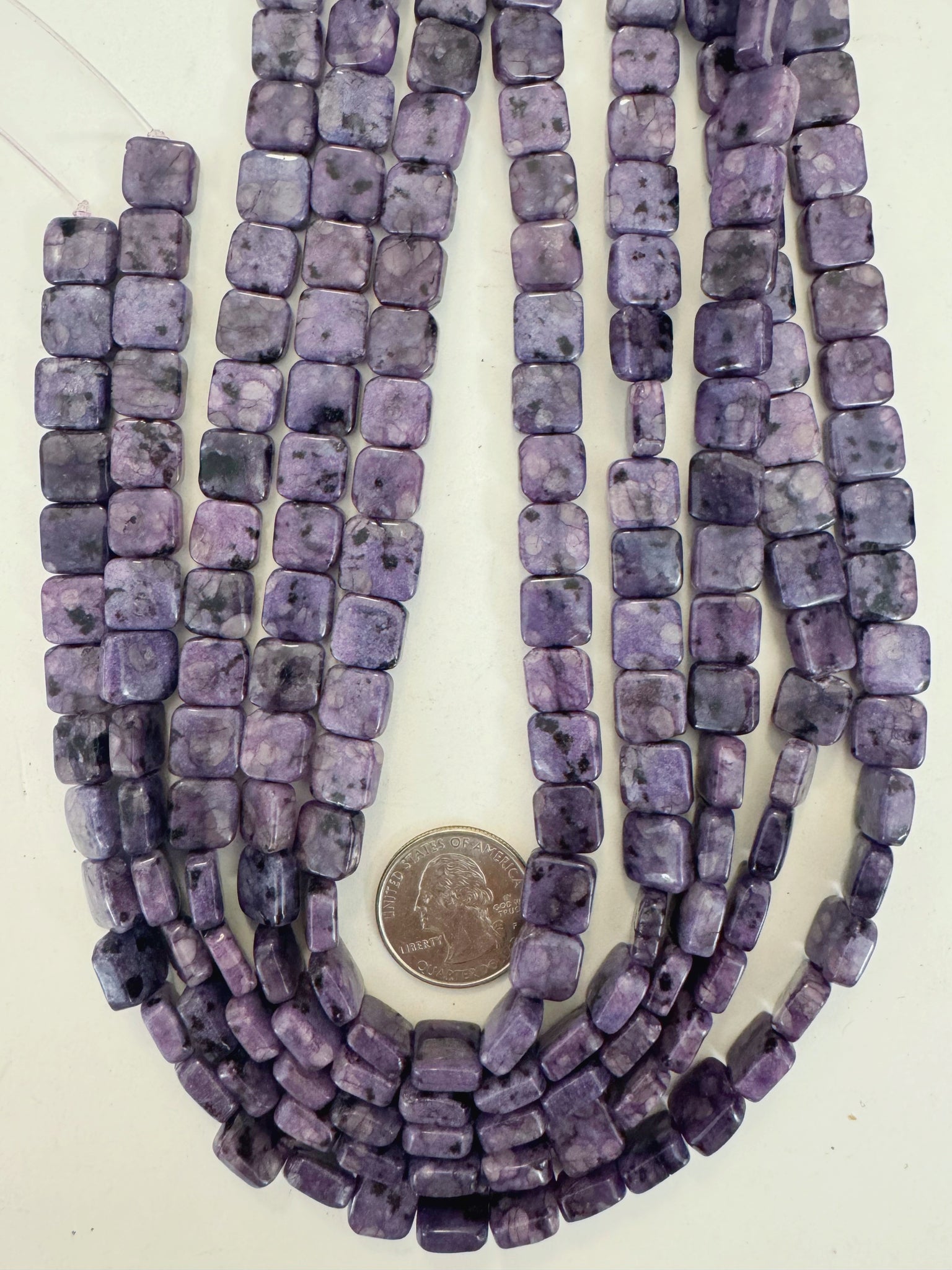 purple enhanced kiwi quartz, 10x10x4mm square, 15" strand, sold per strand