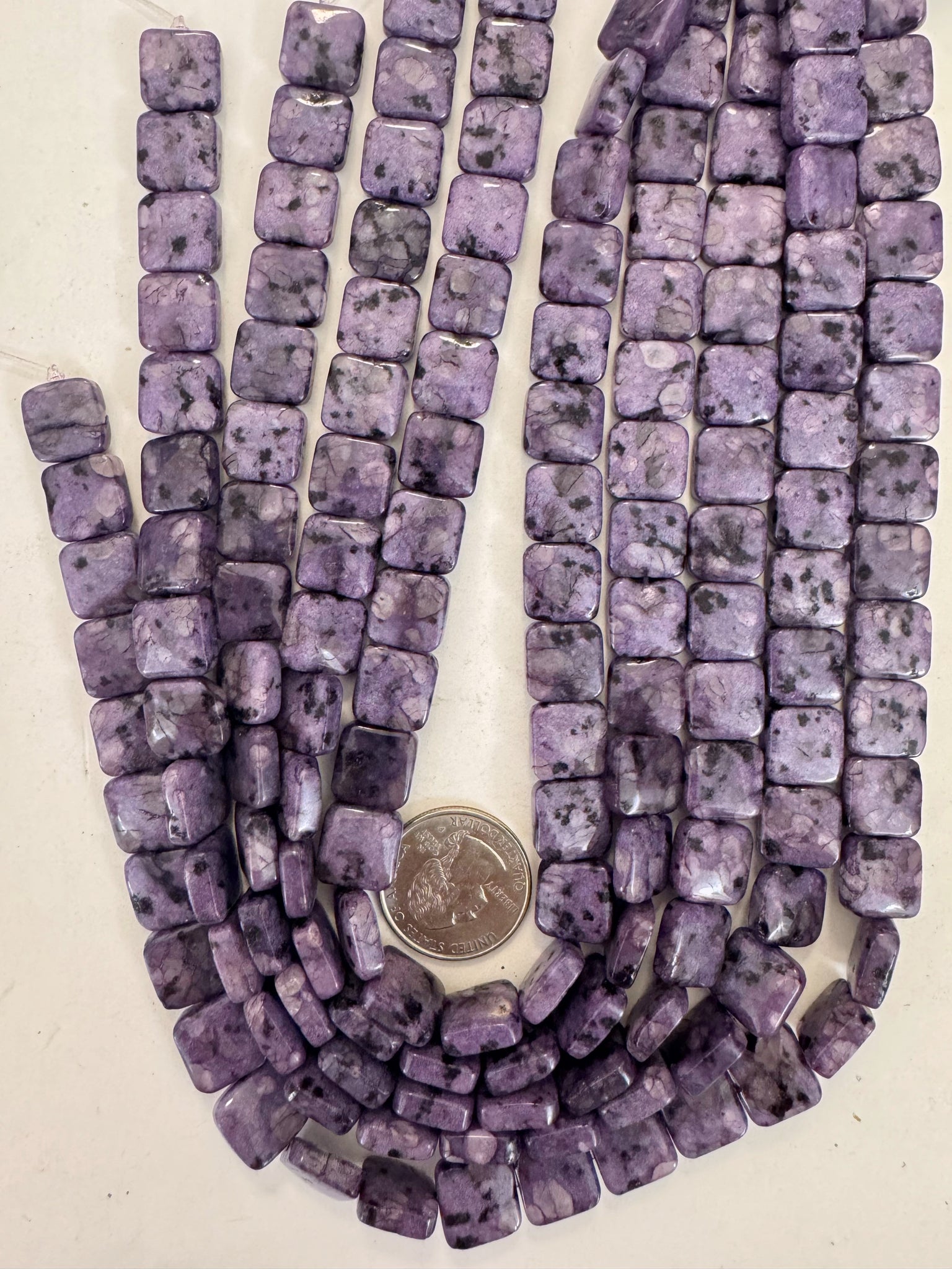 purple enhanced kiwi quartz, 12x12x6mm square, 15" strand, sold per strand