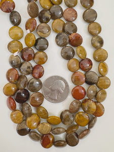red wooden jasper, 16x16x4mm coin, 15" strand, sold per strand