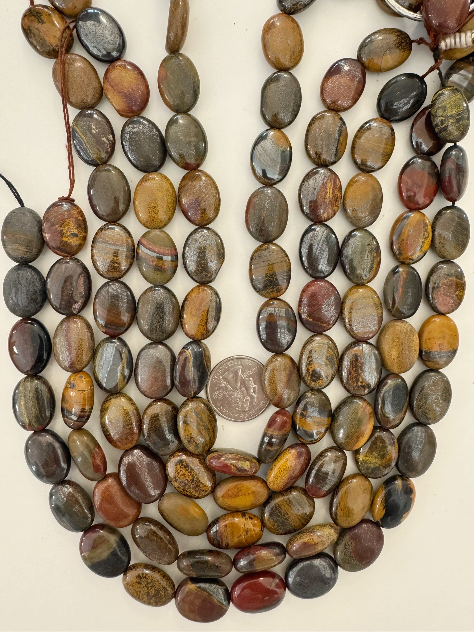 red wooden jasper, 20x15x8mm oval, 15" strand, sold per strand