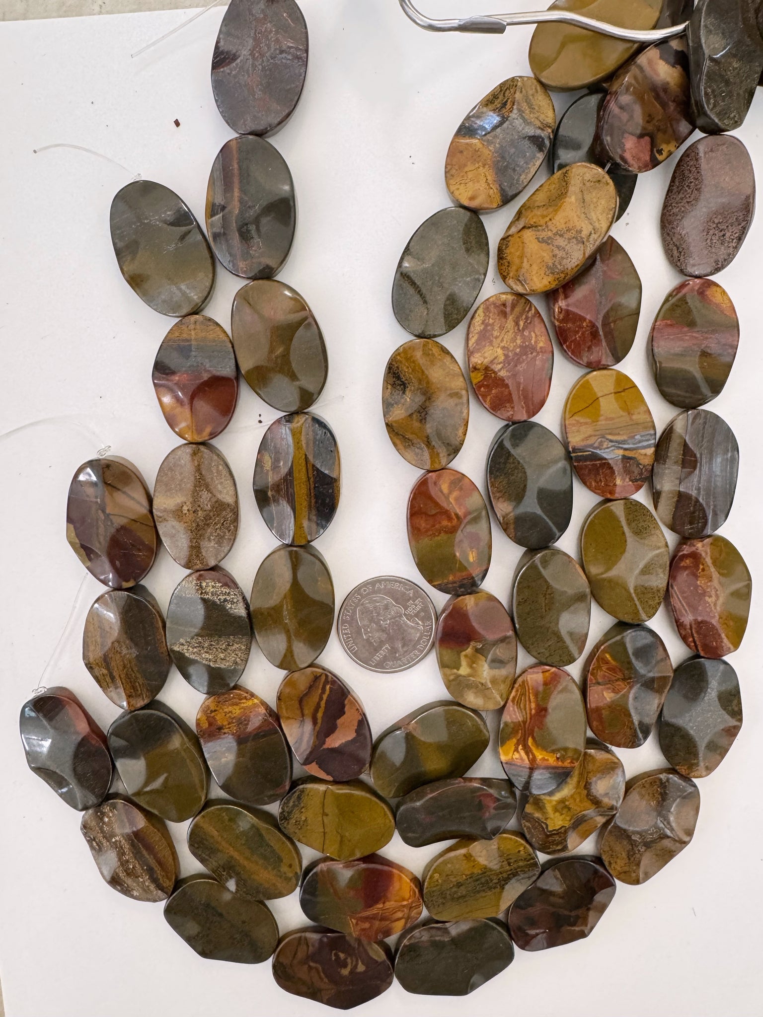 red wooden jasper, 30x21x6mm wavy oval, 15" strand, sold per strand (batch 1)