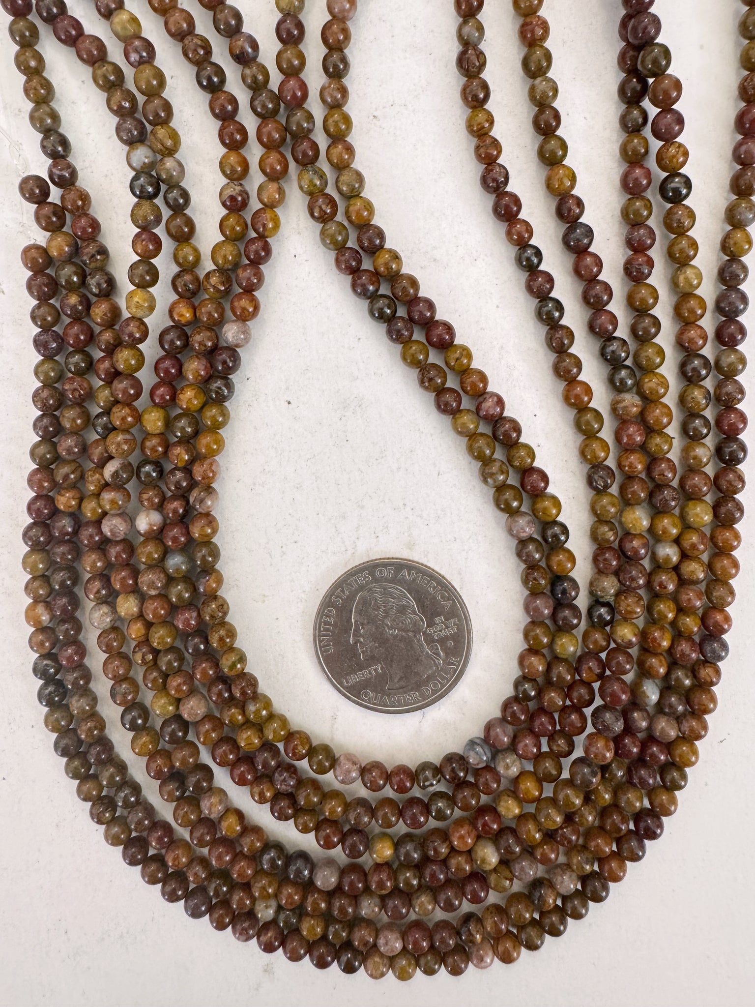 red wooden jasper, 4mm round, 15" strand, sold per strand