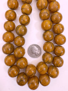 dark pale orange black crackle, vintage look resin, 19mm nugget round, 15" strand, sold per strand