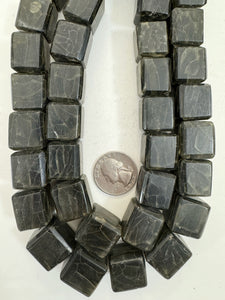 very dark olive green crackle motif, vintage look resin, 18x17x17mm cube, 15" strand, sold per strand