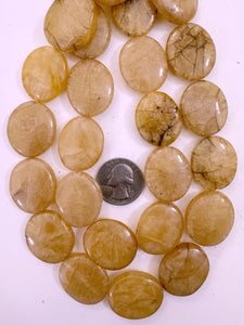 pale yellow peach dark crackle, vintage look resin, 28x23x9mm oval, 15" strand, sold per strand