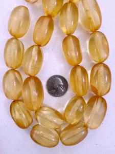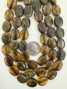 dark crack amber dark mustard yellow mix, vintage look resin, 18x14x6mm oval, 15" strand, sold per strand