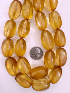 dark golden amber, vintage look resin, 18x14x7mm barrel, 15" strand, sold per strand