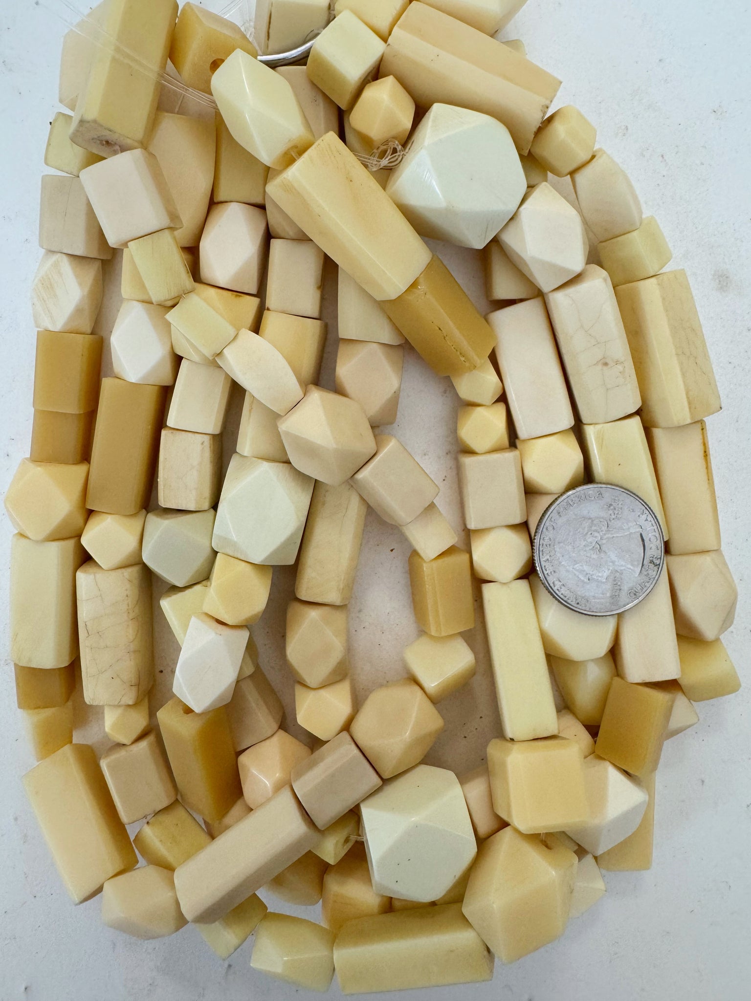 off white 4 sided  mix, faux bone, vintage look resin, 15" strand, sold per strand