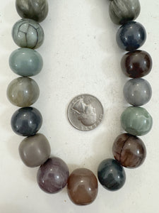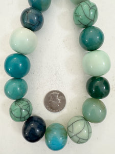 blue multi color mix, vintage look resin, 22-26mm size mix round, 15" strand, sold per strand