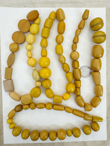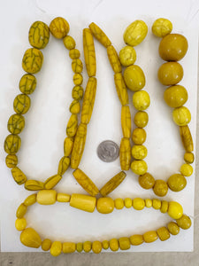 yellow tones mix, vintage look resin, size and shape mix, 15" strand, 4 strand lot