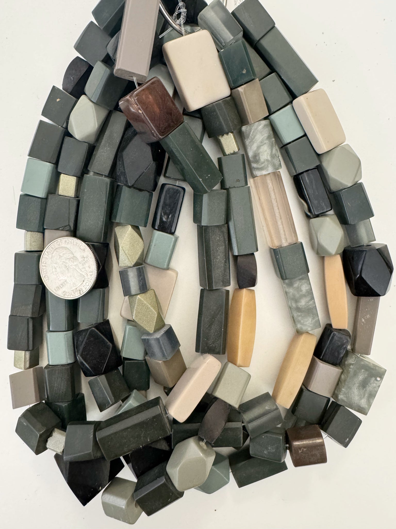 pale purple mint black gray 4 sided mix, vintage look resin, 15" strand, sold per strand