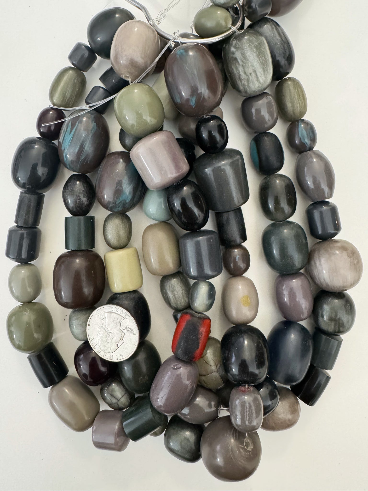 pale purple mint black gray barrel mix, vintage look resin, 15" strand, sold per strand