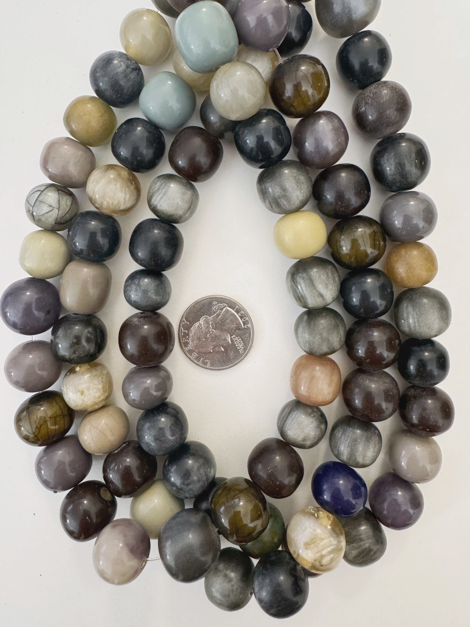 pale purple mint black gray mix, vintage look resin, 14-16mm size mix round, 15" strand, sold per strand
