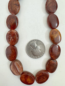 dark pearly red orange, vintage look resin, 18x15x7mm oval, 15" strand, sold per strand