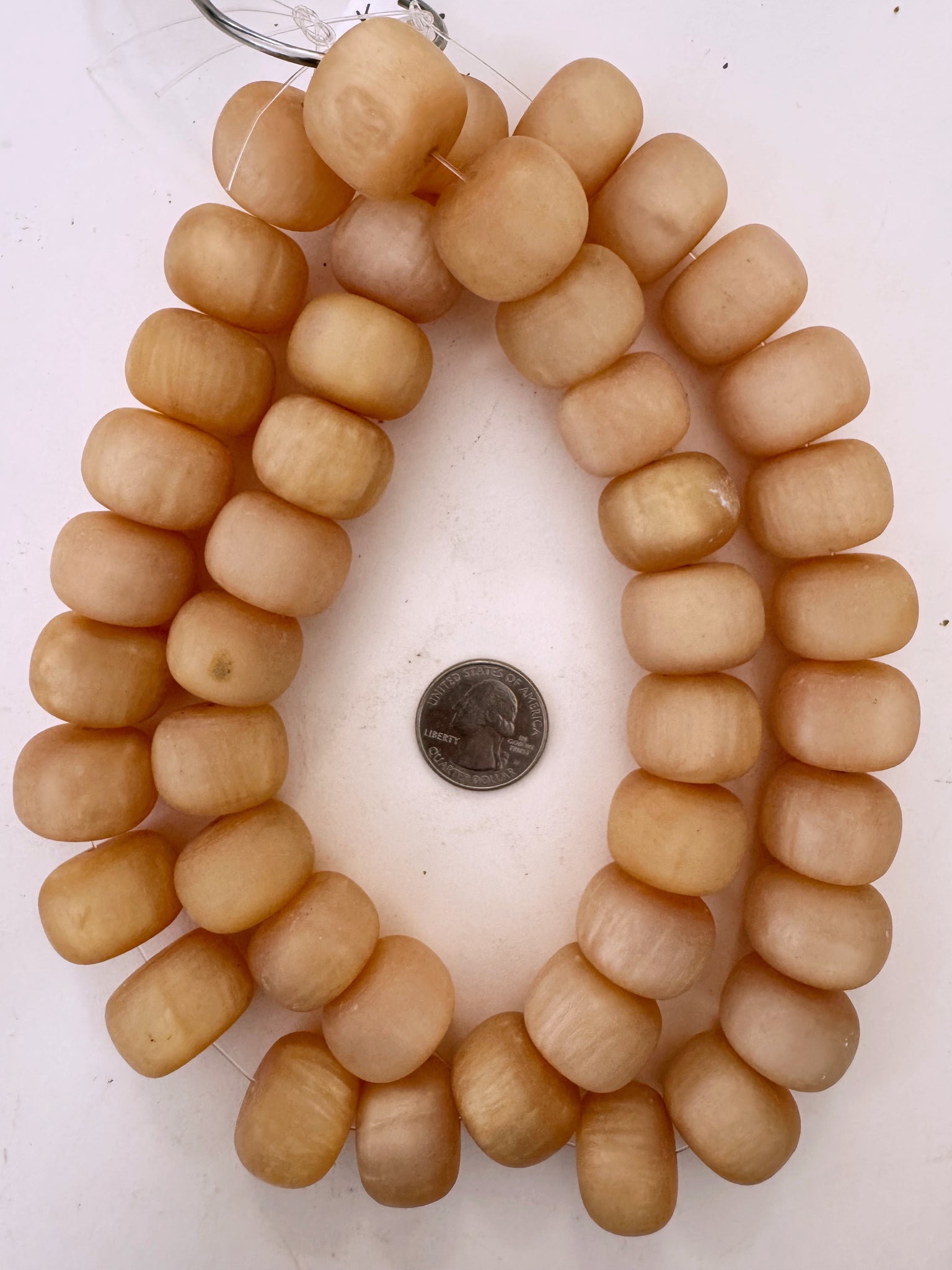 matte pale pearly peach, vintage look resin, 22x17mm rondelle, 15" strand, sold per strand