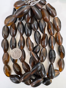 dark orange brown amber, faux amber, single color, vintage look resin, 30x16mm slice cut bowed tube, 15" strand, sold per strand