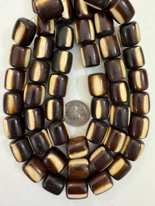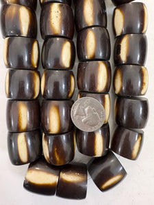 dark chocolate brown off white stripe, faux bone, vintage look resin, 35x29mm barrel tube, 15" strand, sold per strand