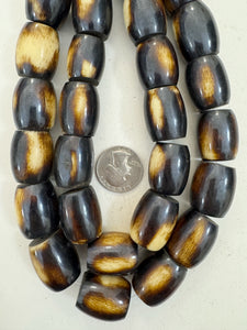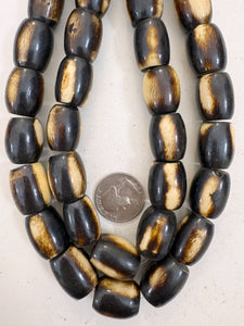 dark chocolate brown off white stripe, faux bone, vintage look resin, 28x25mm barrel, 15" strand, sold per strand