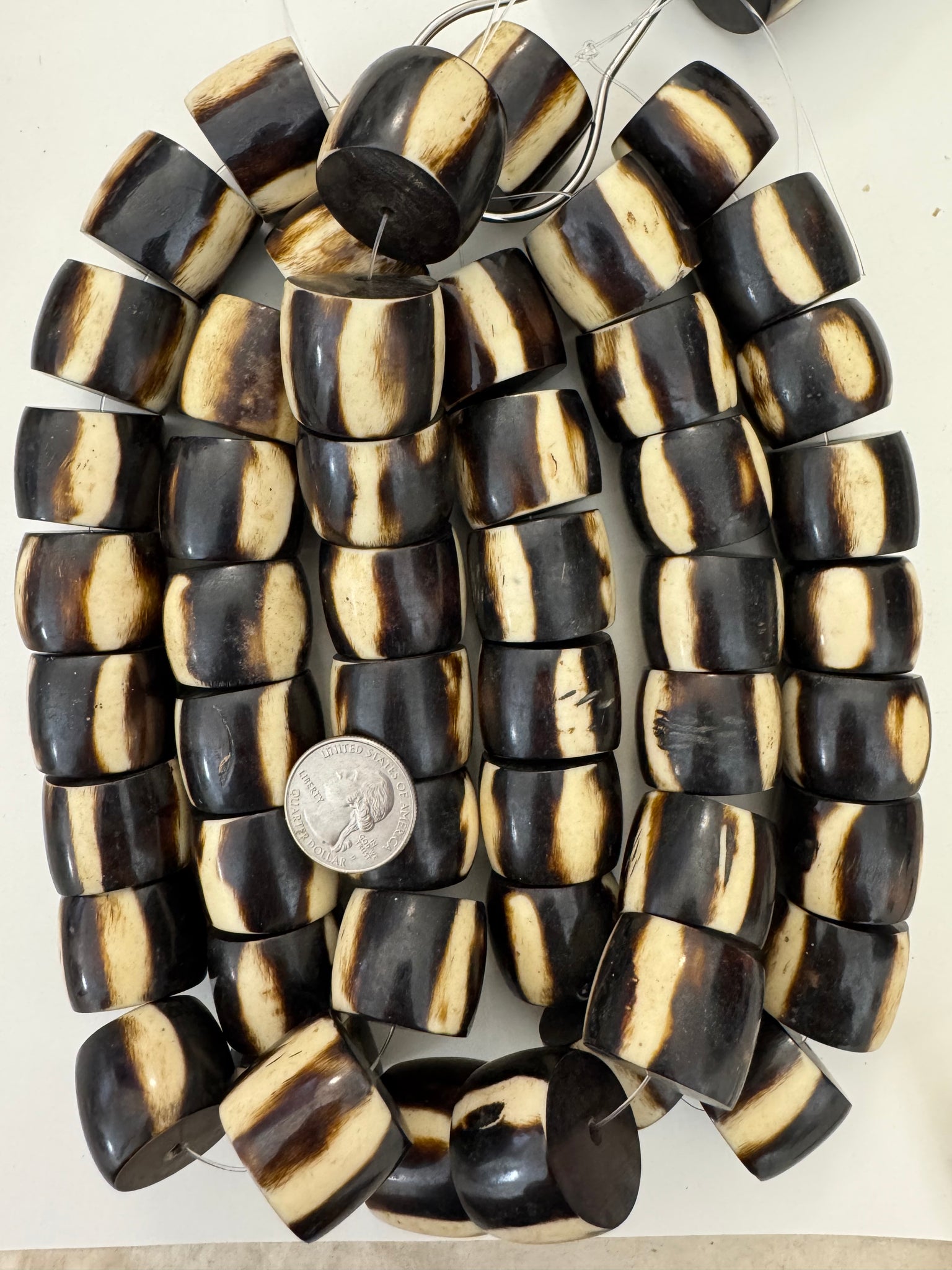 brown off white stripe motif, faux bone, vintage look resin, 27x21mm rondelle, 15" strand, sold per strand