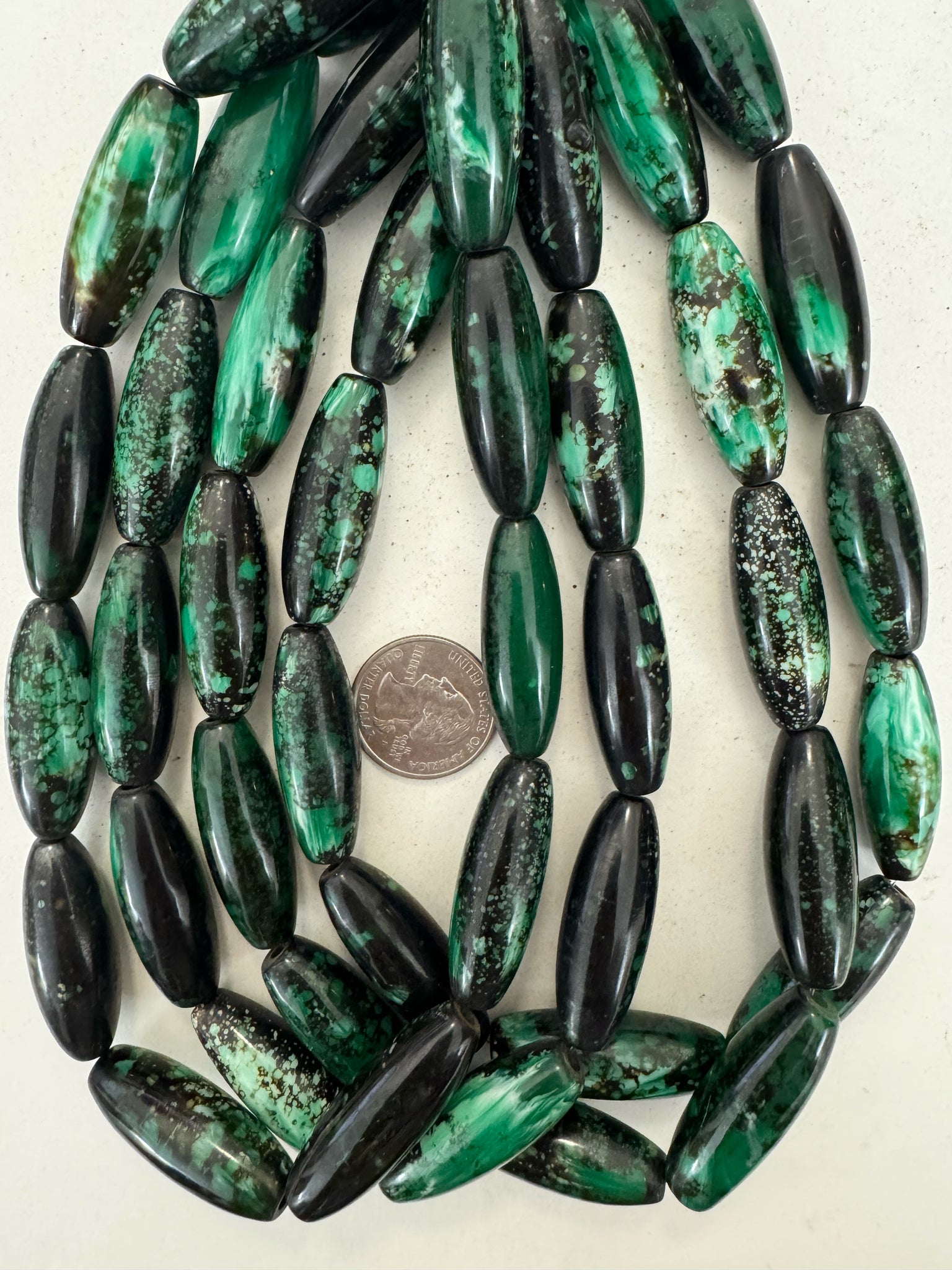 black green white swirl, vintage look resin, 38x13mm bowed tube, 15" strand, sold per strand