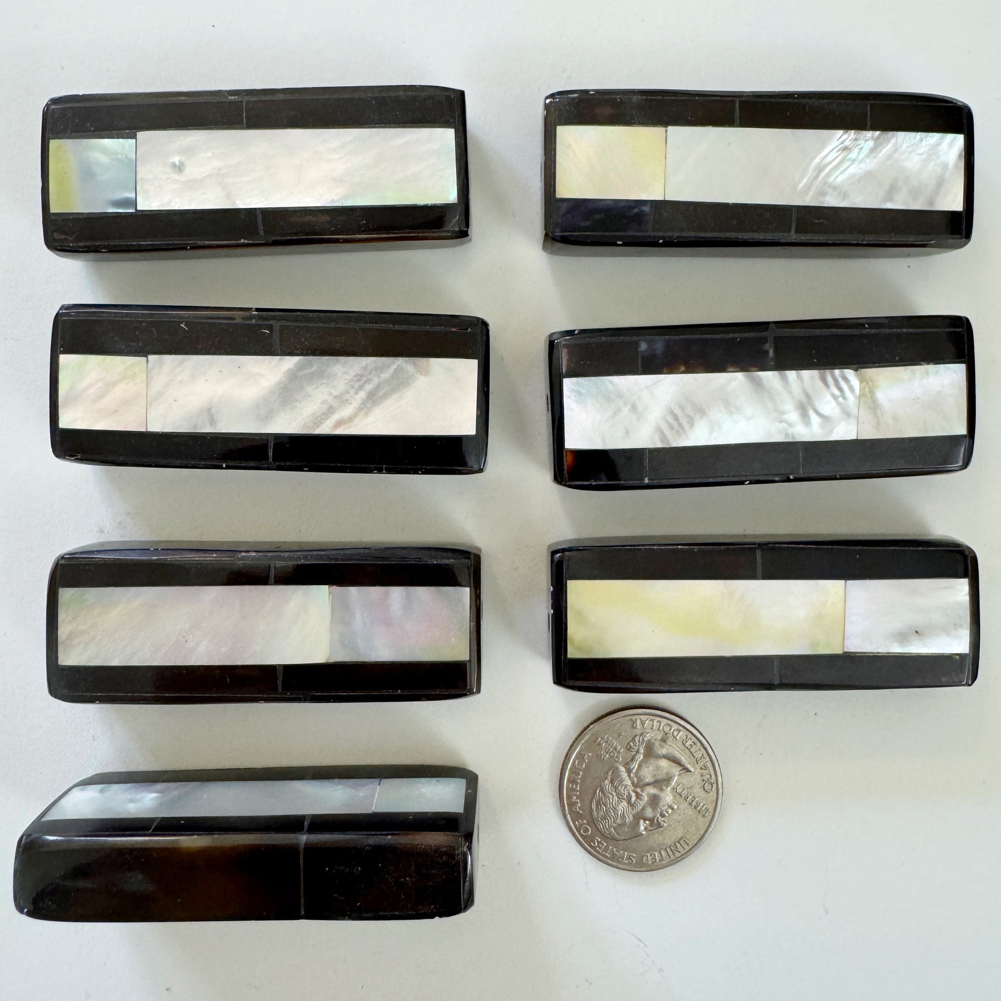 yellow mother of pearl, purple shell, mosaic shell motif, vintage stock, 59x22x12mm rectangle, sold per bead, smoother edges batch