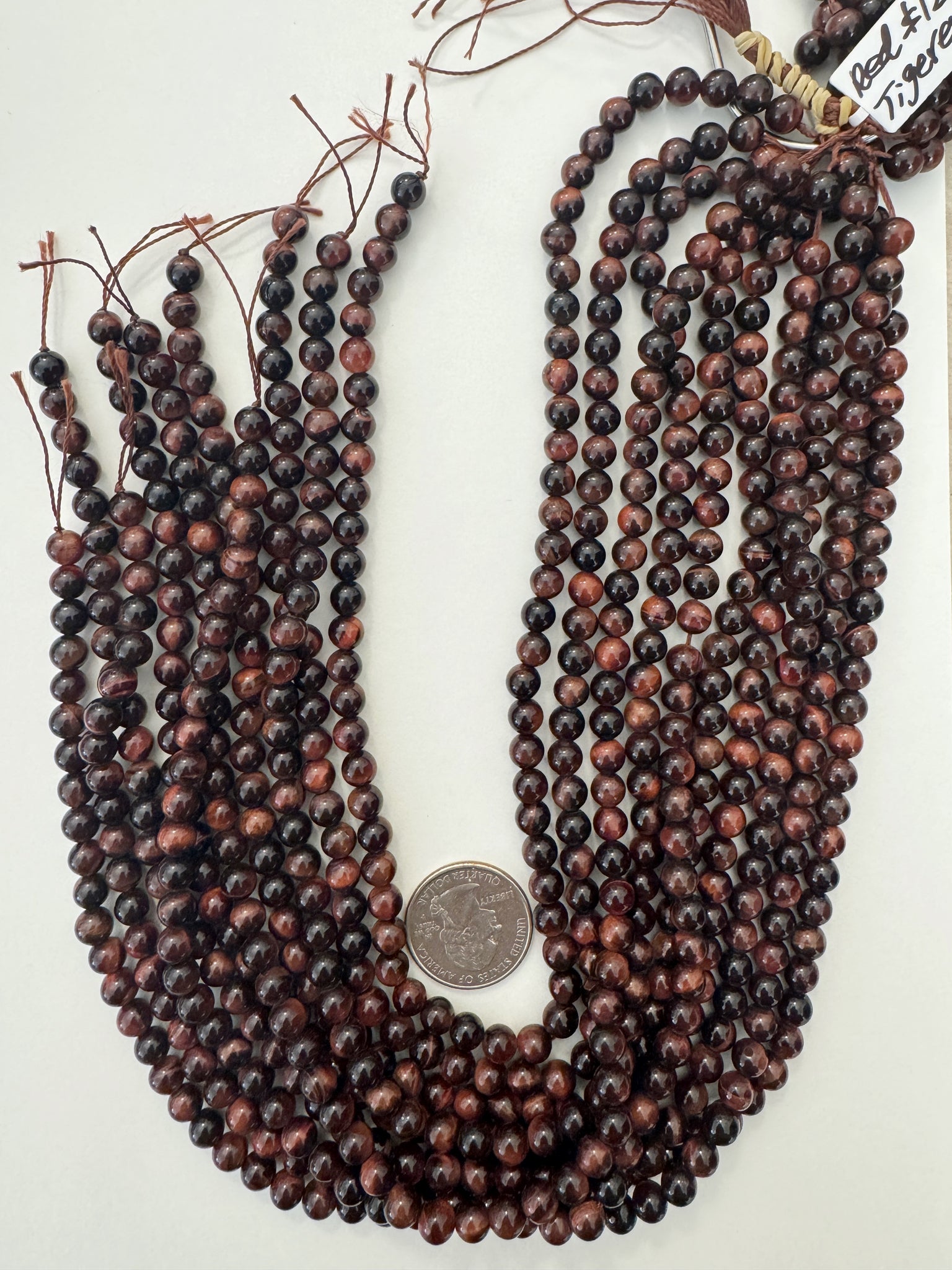 red tiger eye, 6mm round, 15" strand, sold per strand