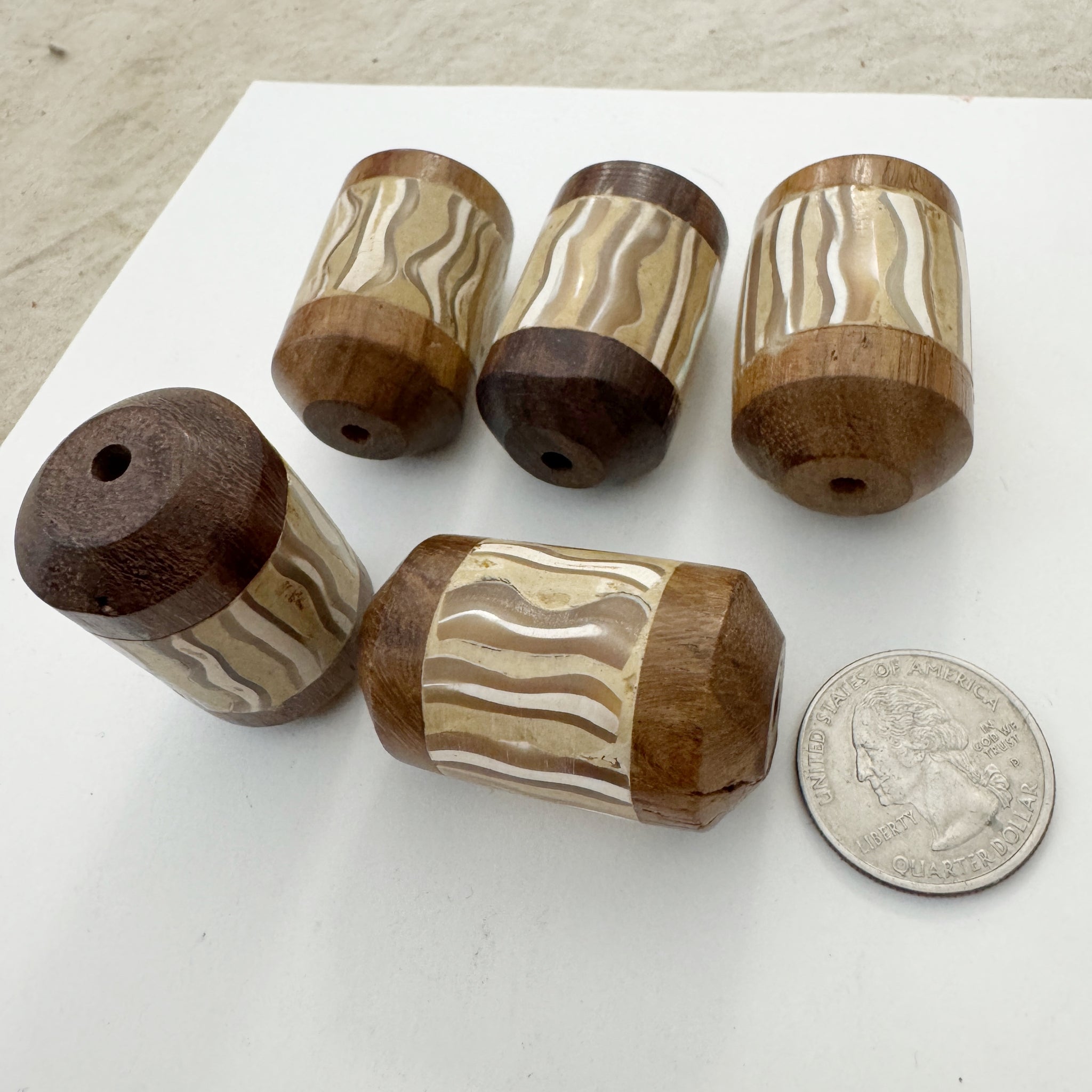 wood, mother of pearl shell inlay, vintage stock, 41x25mm filed point bicone top barrel tube, sold per bead