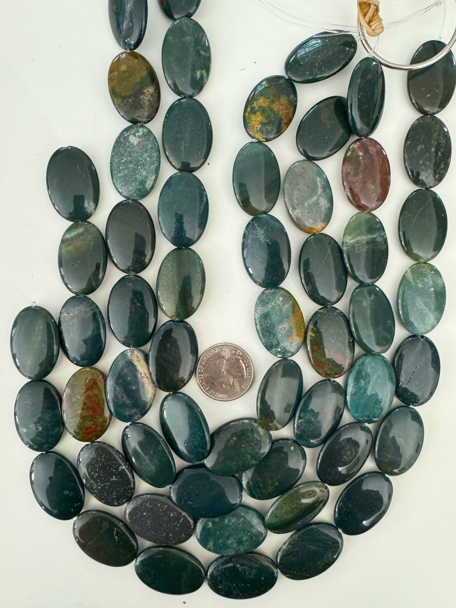 yellow green bloodstone, 29x20x5mm oval, 15" strand, sold per strand (batch 1)