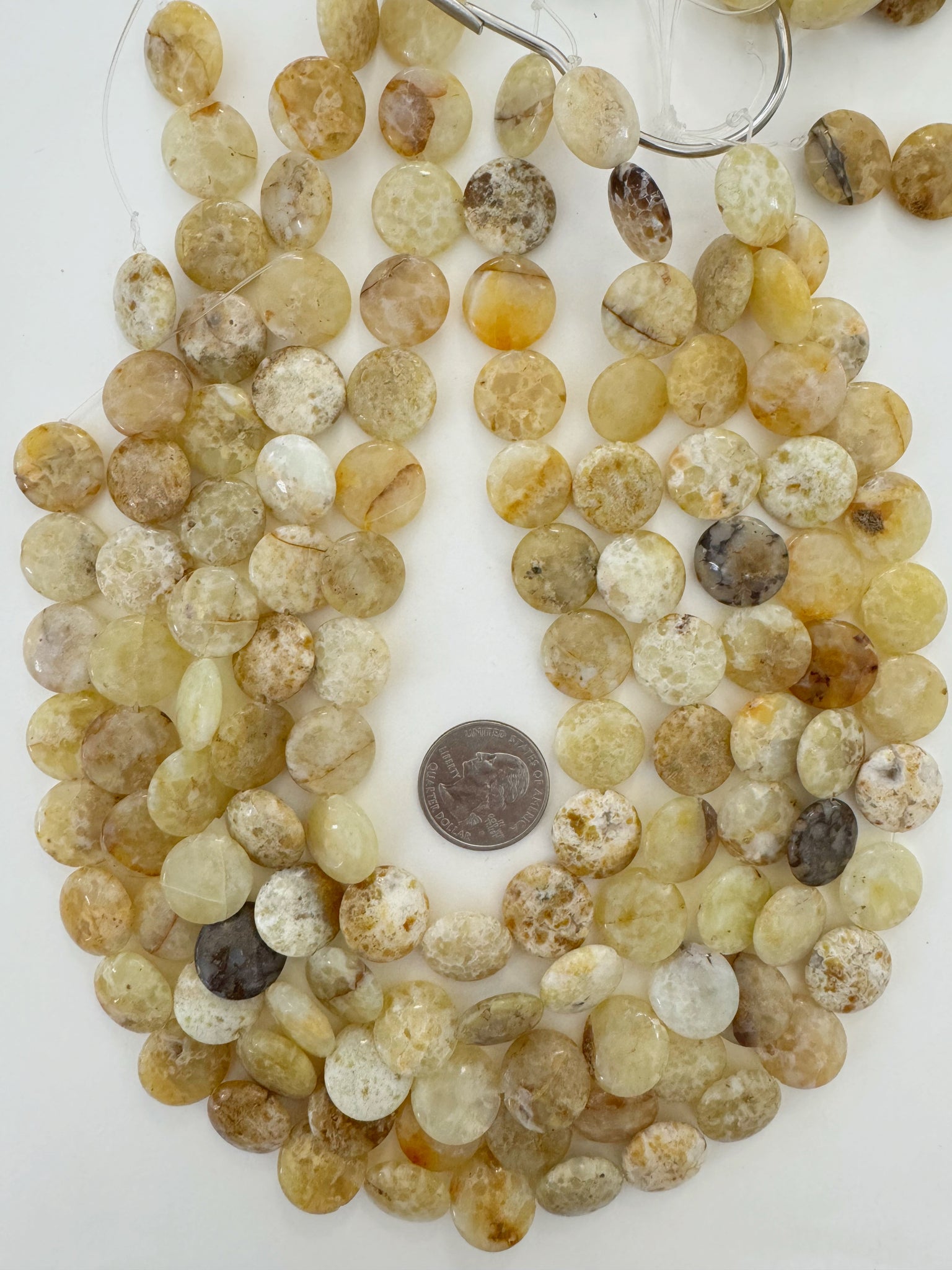 yellow opal, 16x16x6mm coin, 15" strand, sold per strand