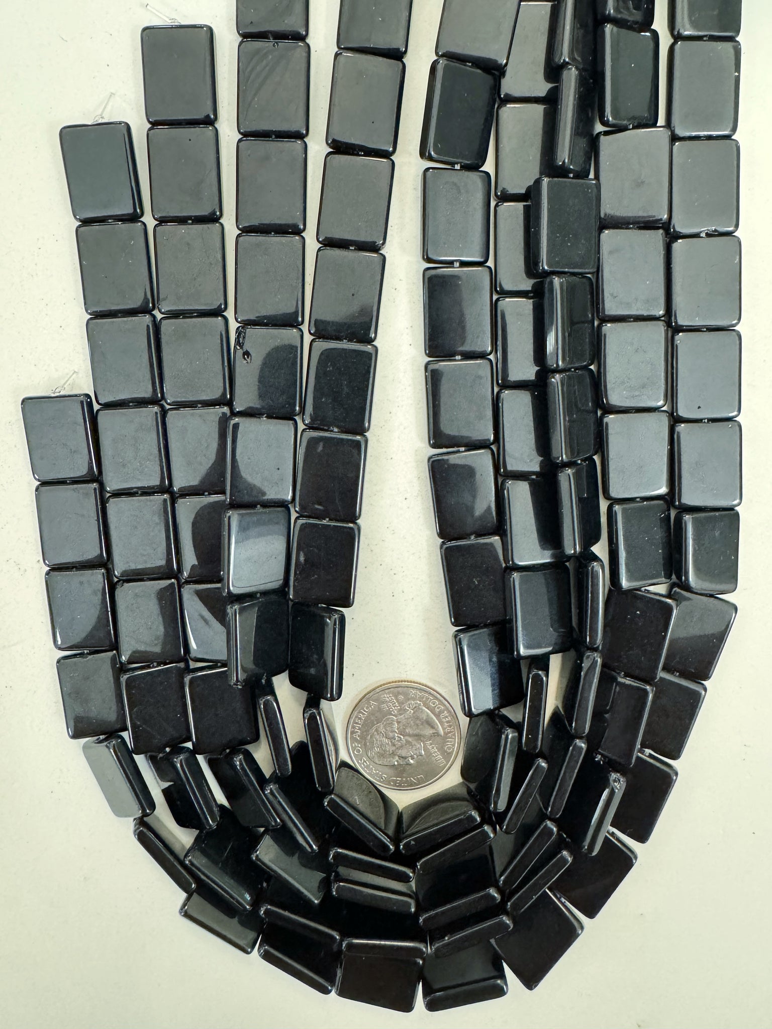black, single color, vintage look glass, 17x13x3mm rectangle, 15" strand, sold per strand
