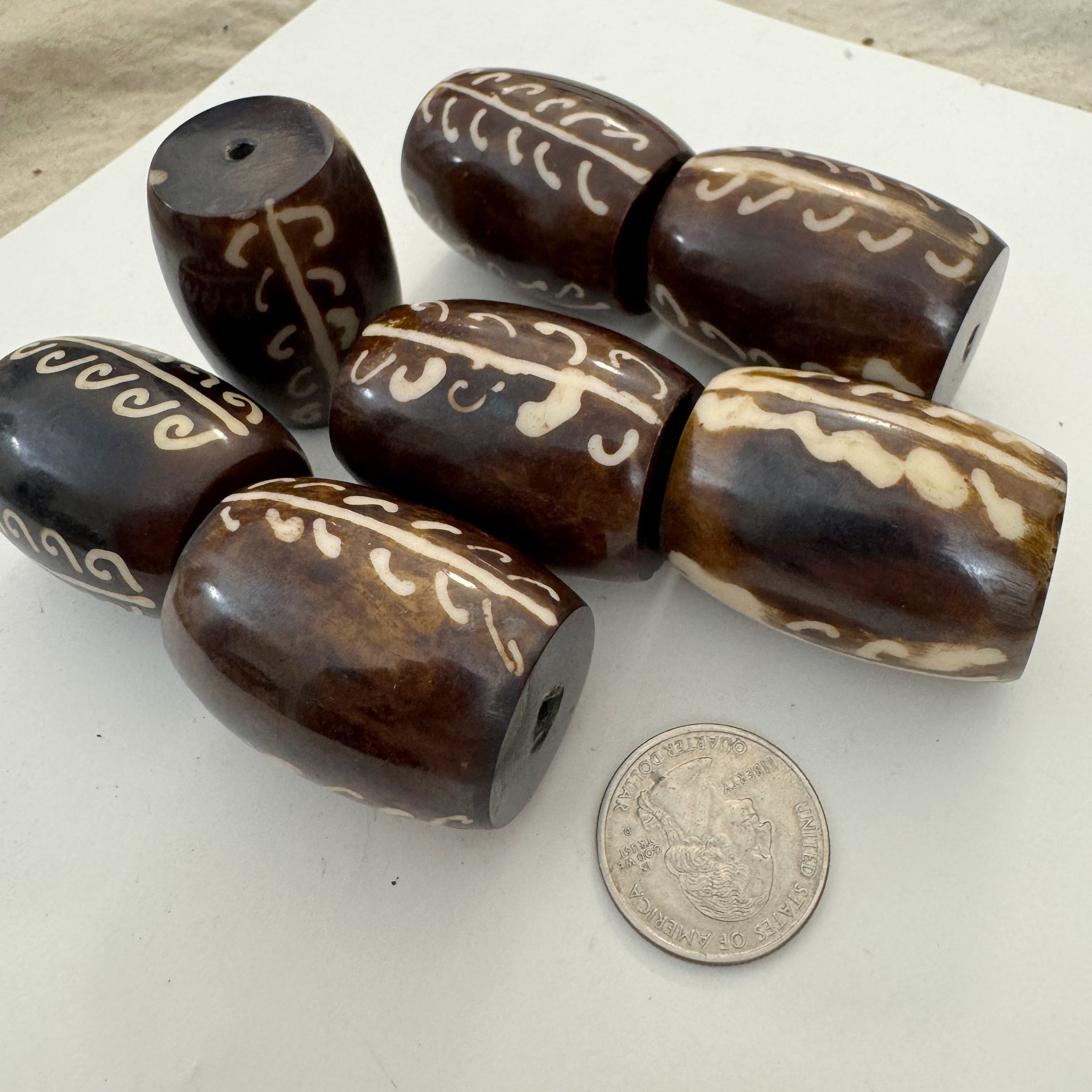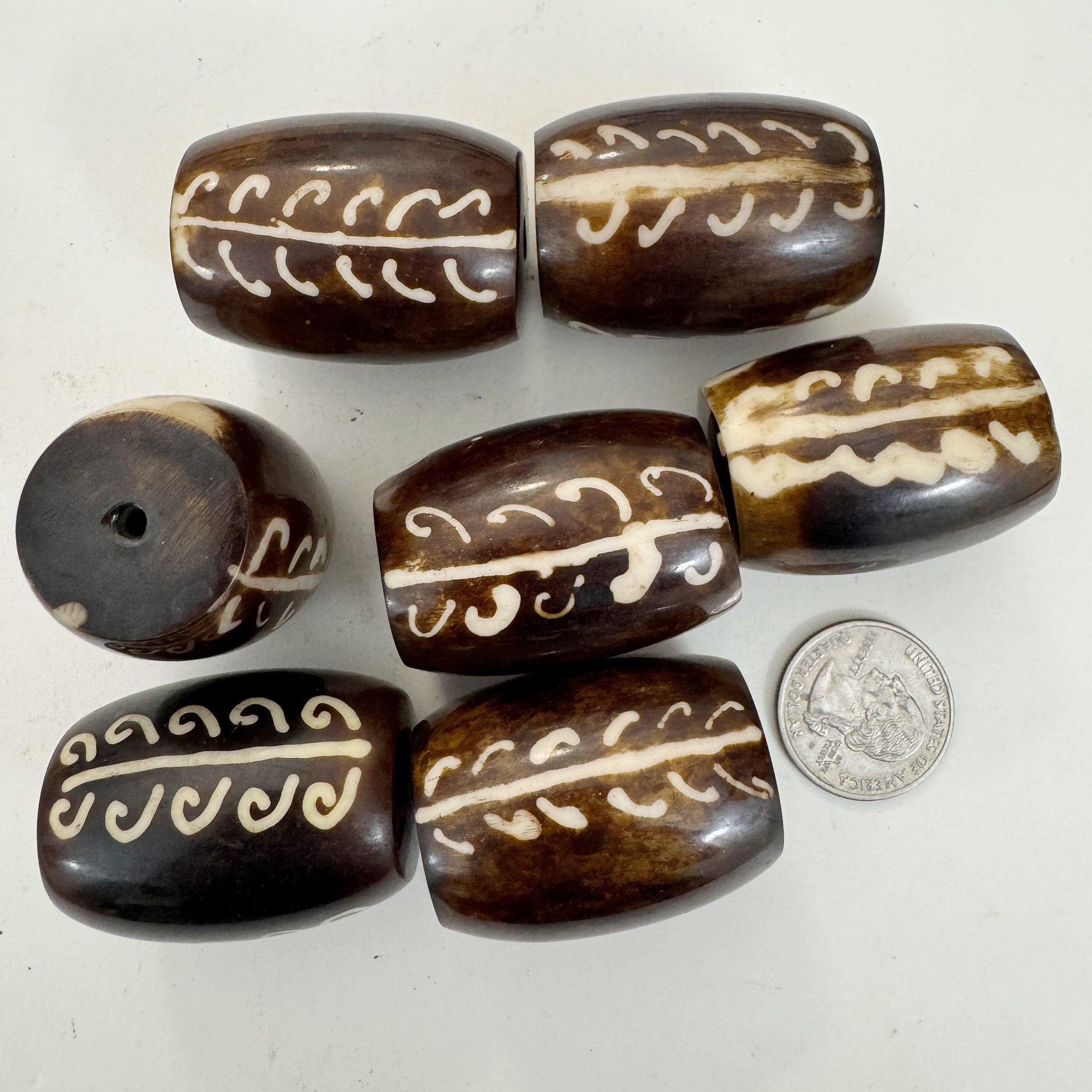 brown off white, floral motif, faux bone look, vintage stock resin, 40x30mm barrel, sold per bead