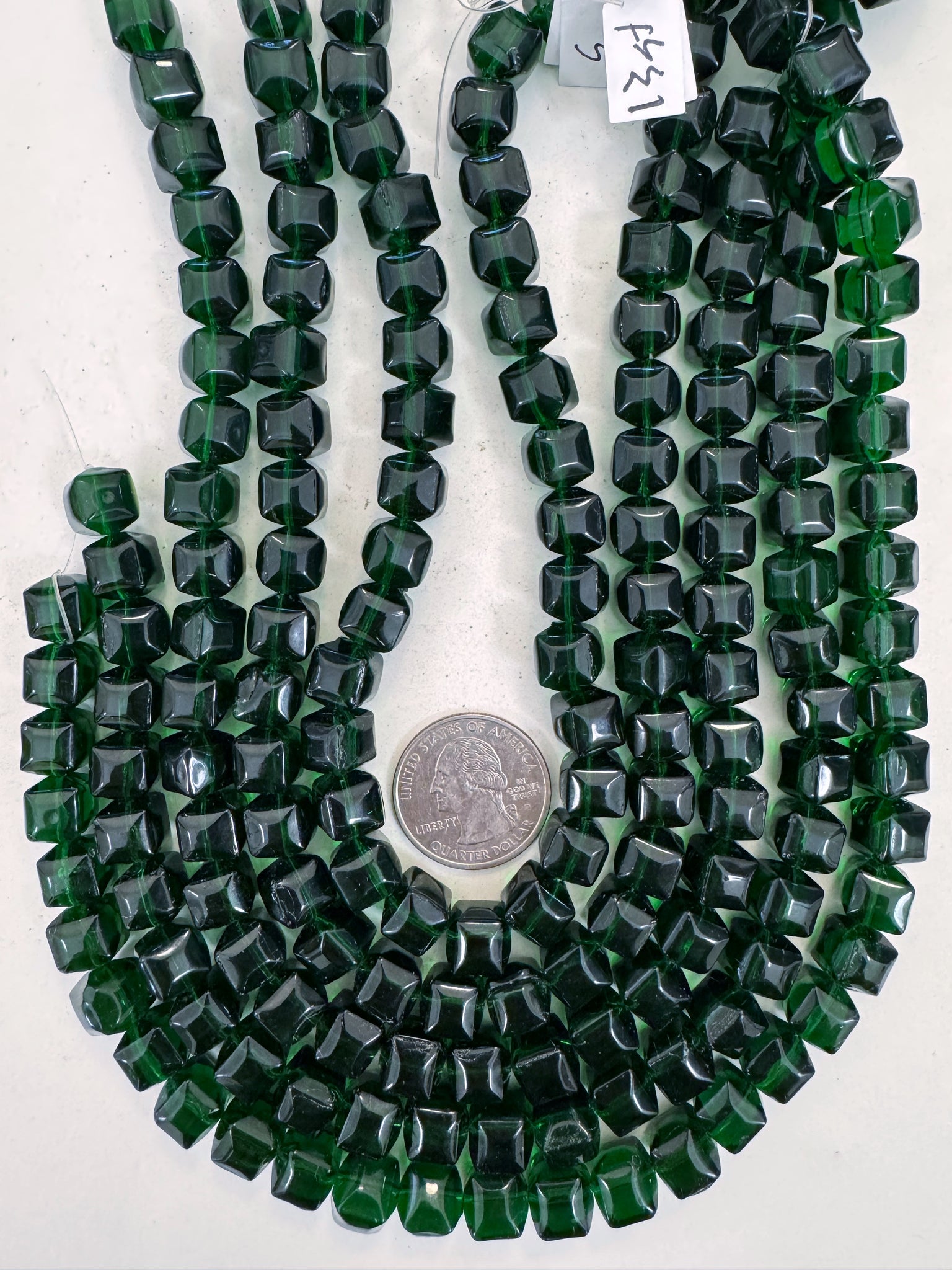 dark green, single color, vintage look glass, 10mm rounded cube, 13" strand, sold per strand