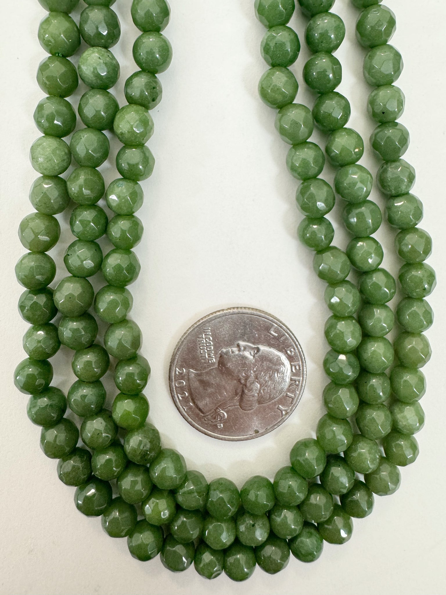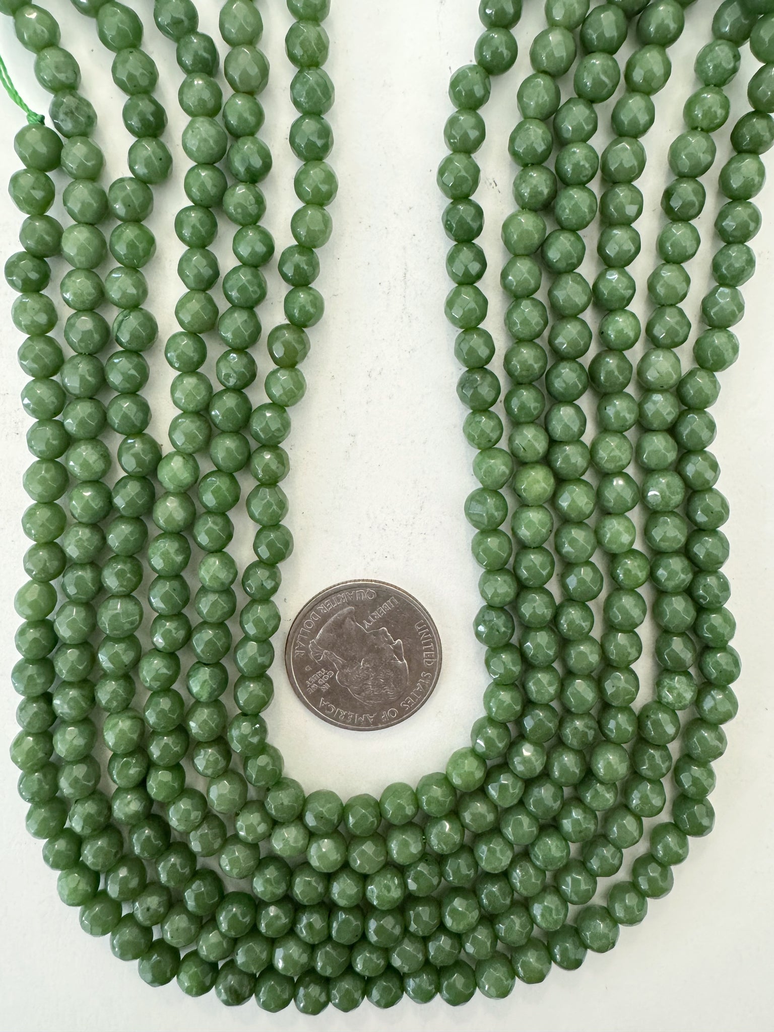 dark pale green enhanced quartz, 6mm faceted round, 15" strand, sold per strand