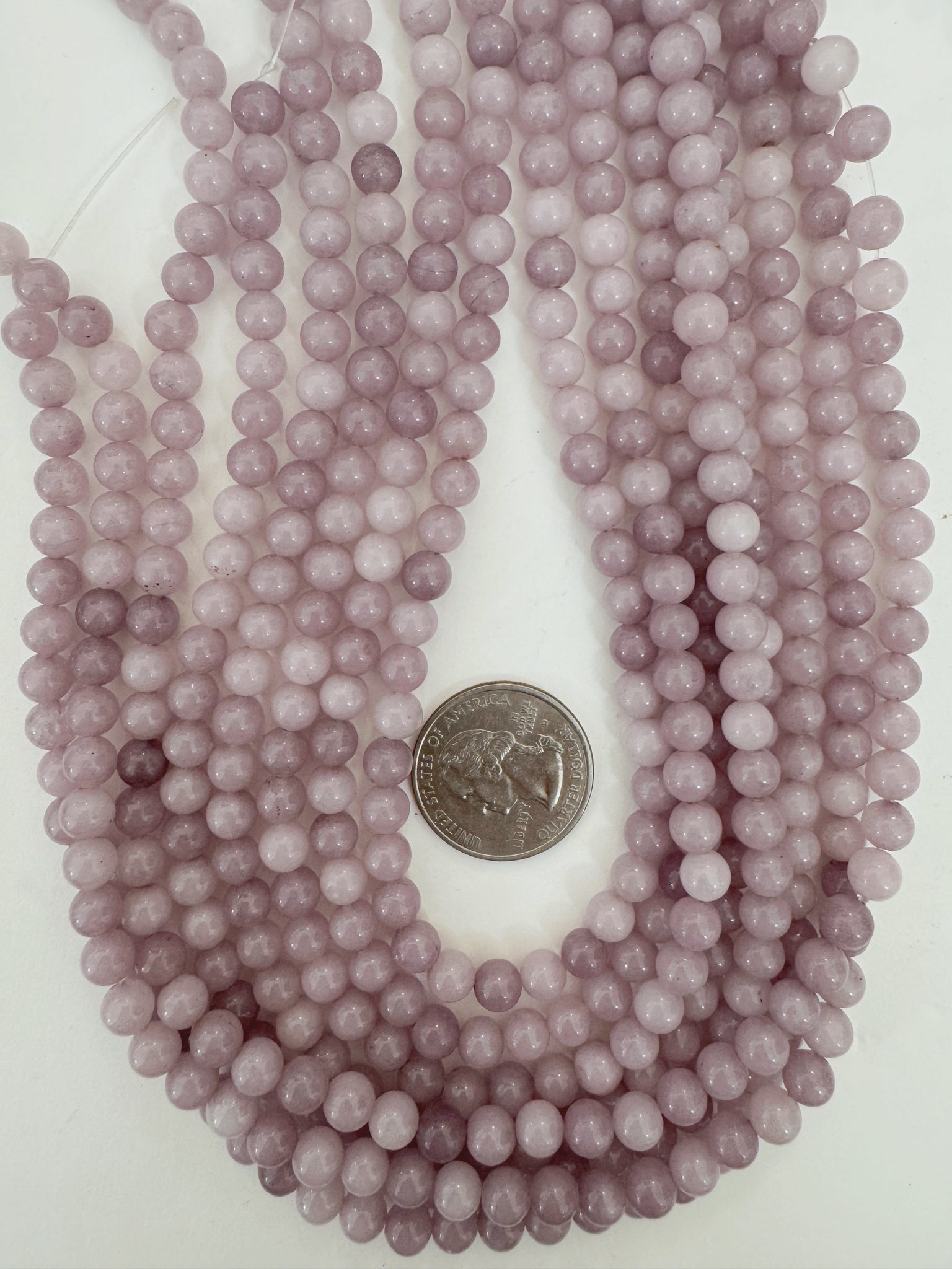 dark pale lavender color enhanced quartz, 6mm round, 15" strand, sold per strand