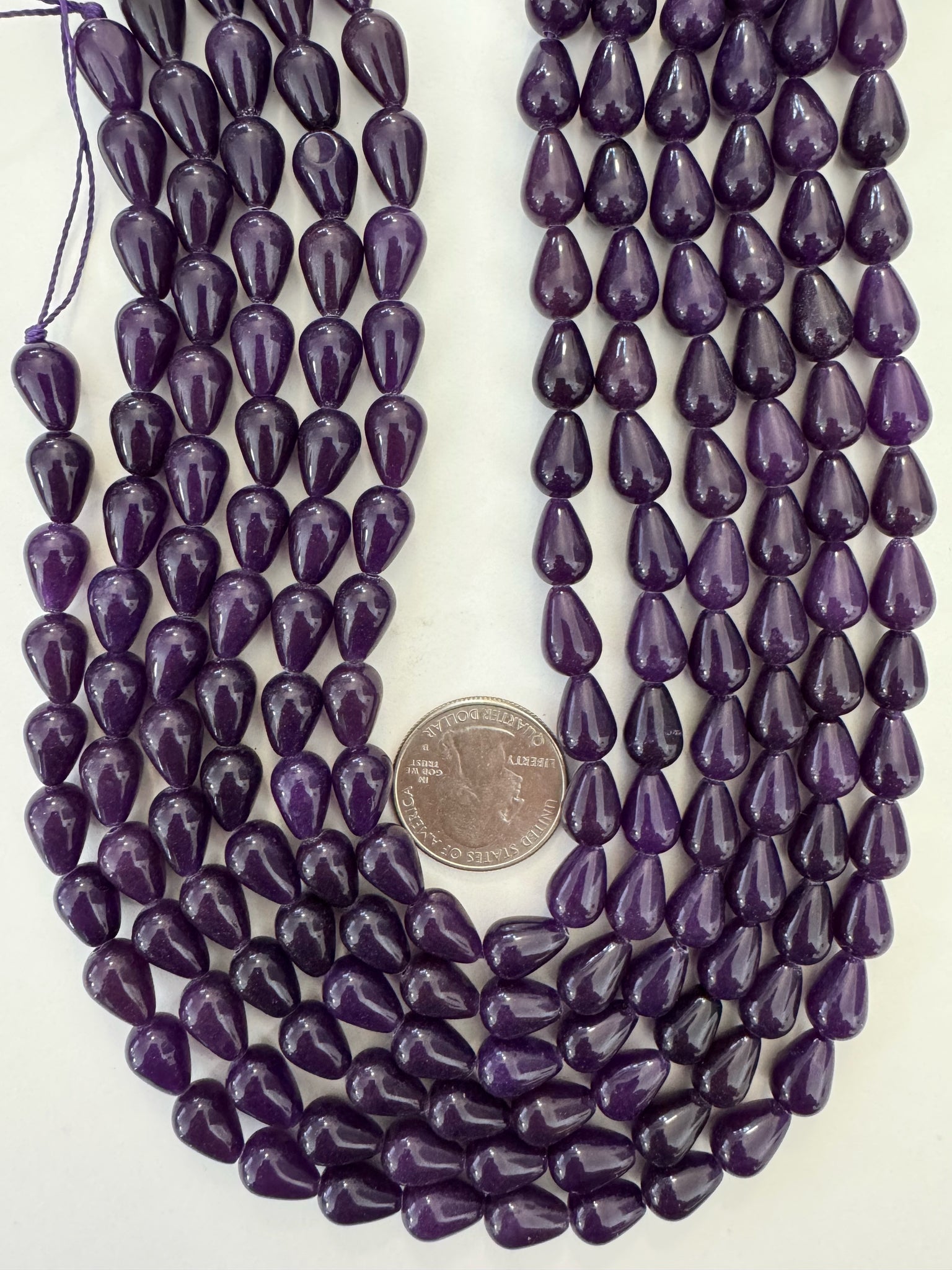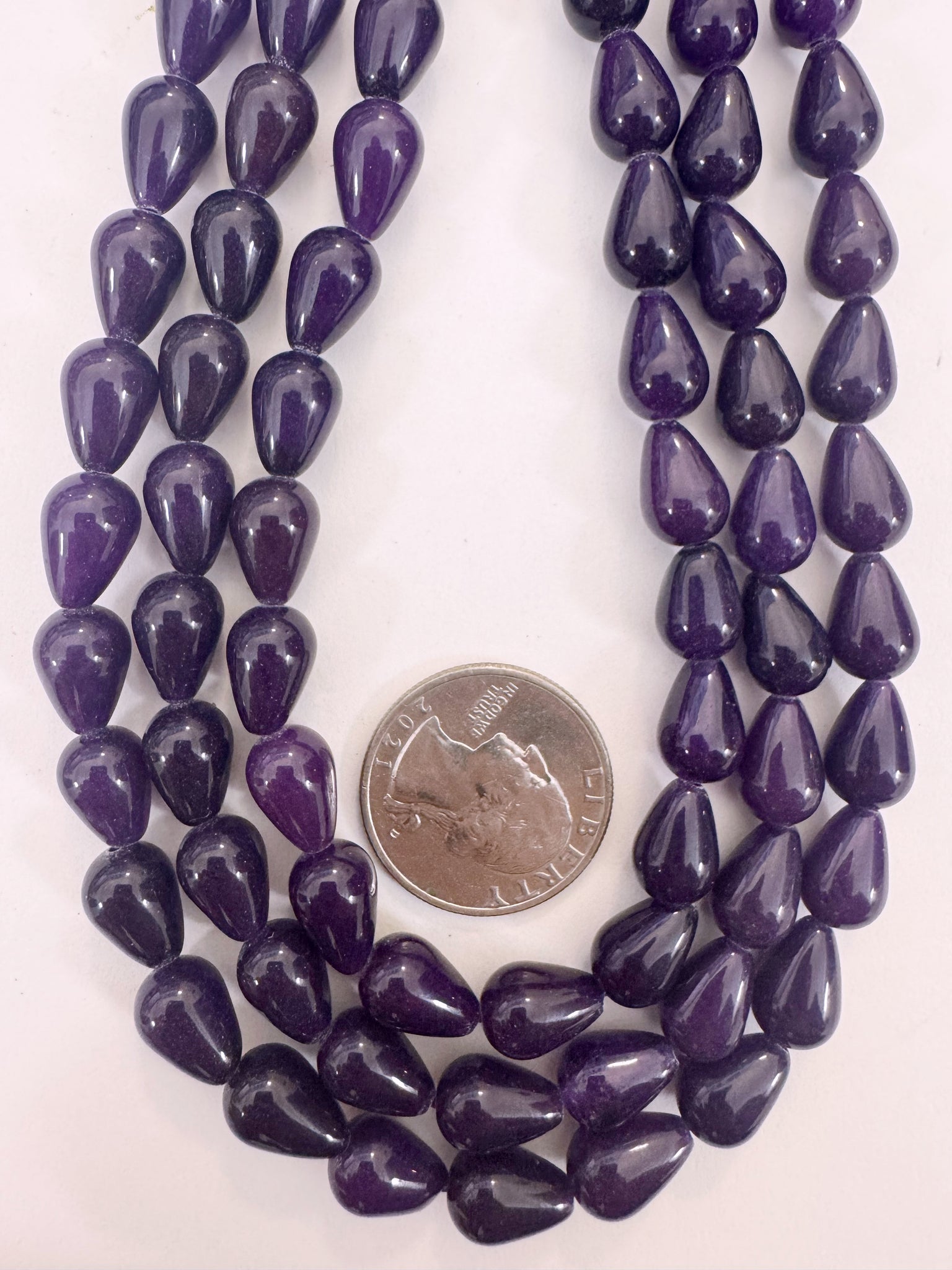 dark royal purple color enhanced quartz, 12x8mm pear teardrop, 15" strand, sold per strand