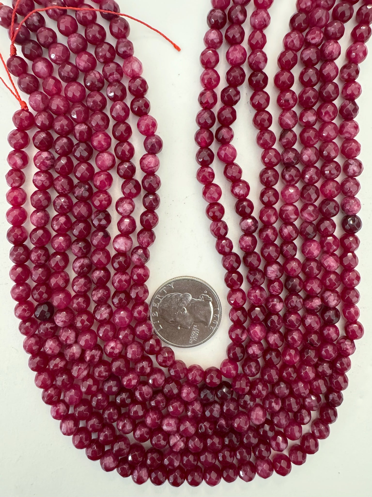 dark ruby red enhanced quartz, 6mm faceted round, 15" strand, sold per strand